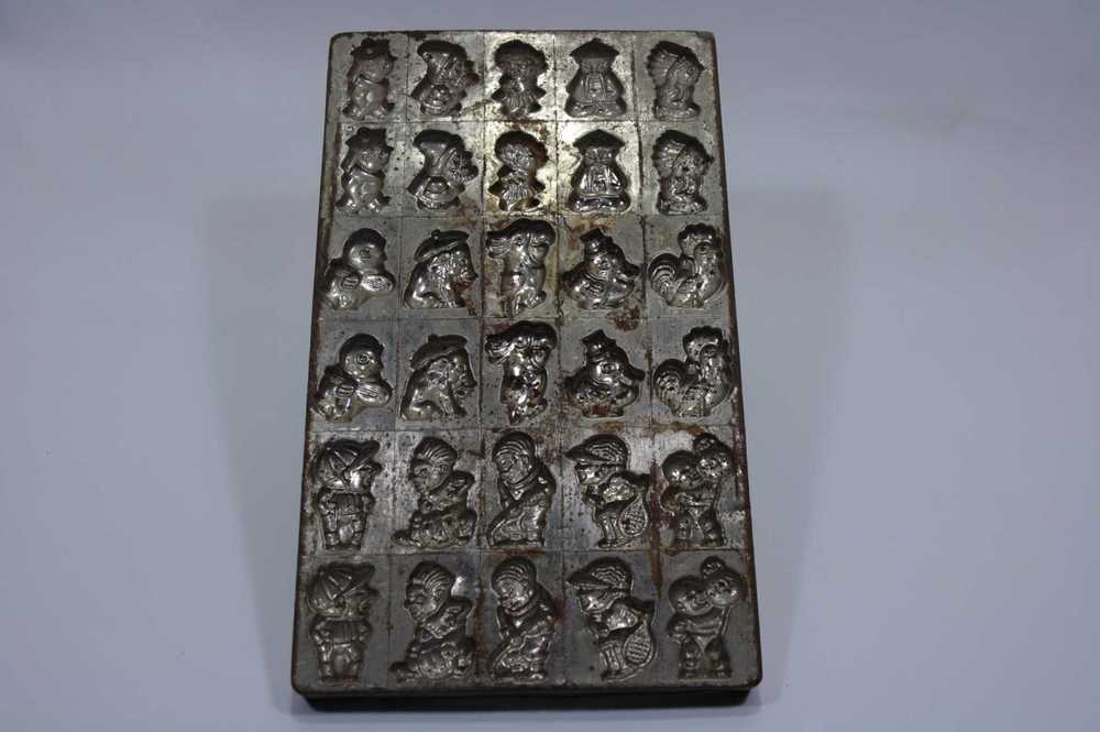 Chocoladevorm van metaal met 30 figuren, o.a. indiaa...