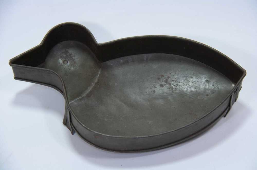 Taartvorm van metaal in de vorm van een eend op drie...