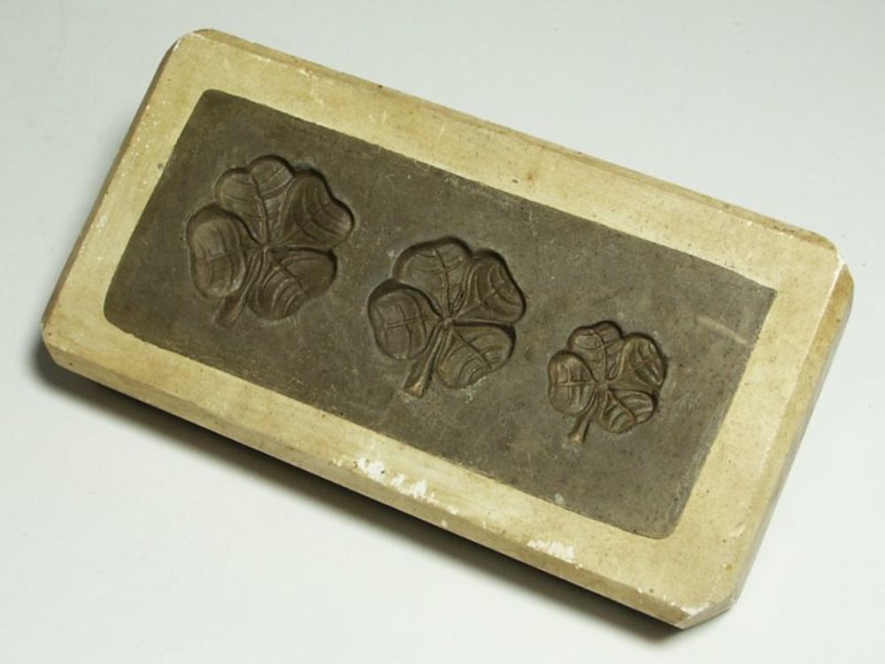 Marsepeinvorm van gips en zwavel in de vorm 3 klaver...