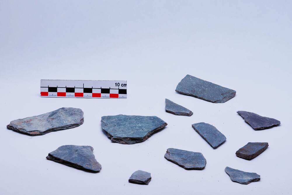 Fragmenten, been/leisteen/hout/textiel/steen/aardewe...