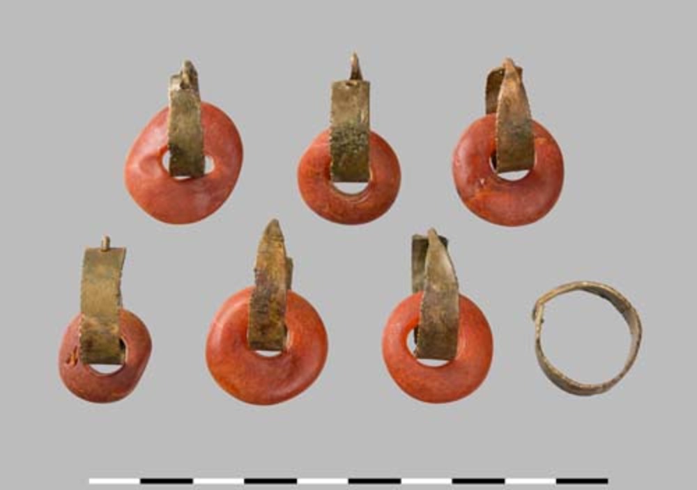 Kralen en koperen ringen, haarversiering uit de ijze...