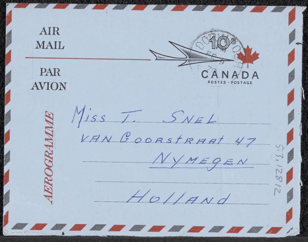 Luchtpostbrief van Mrs. A.M. Huxtable (Alma Maria Ui...