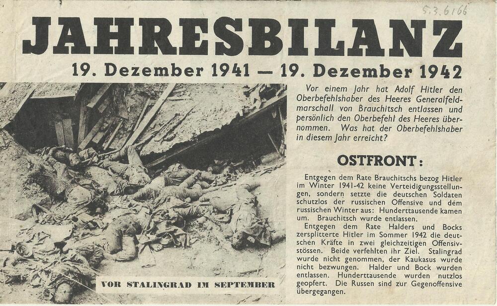 Pamflet "Jahresbilanz 19. Dezember 1941-19 .Dezember...