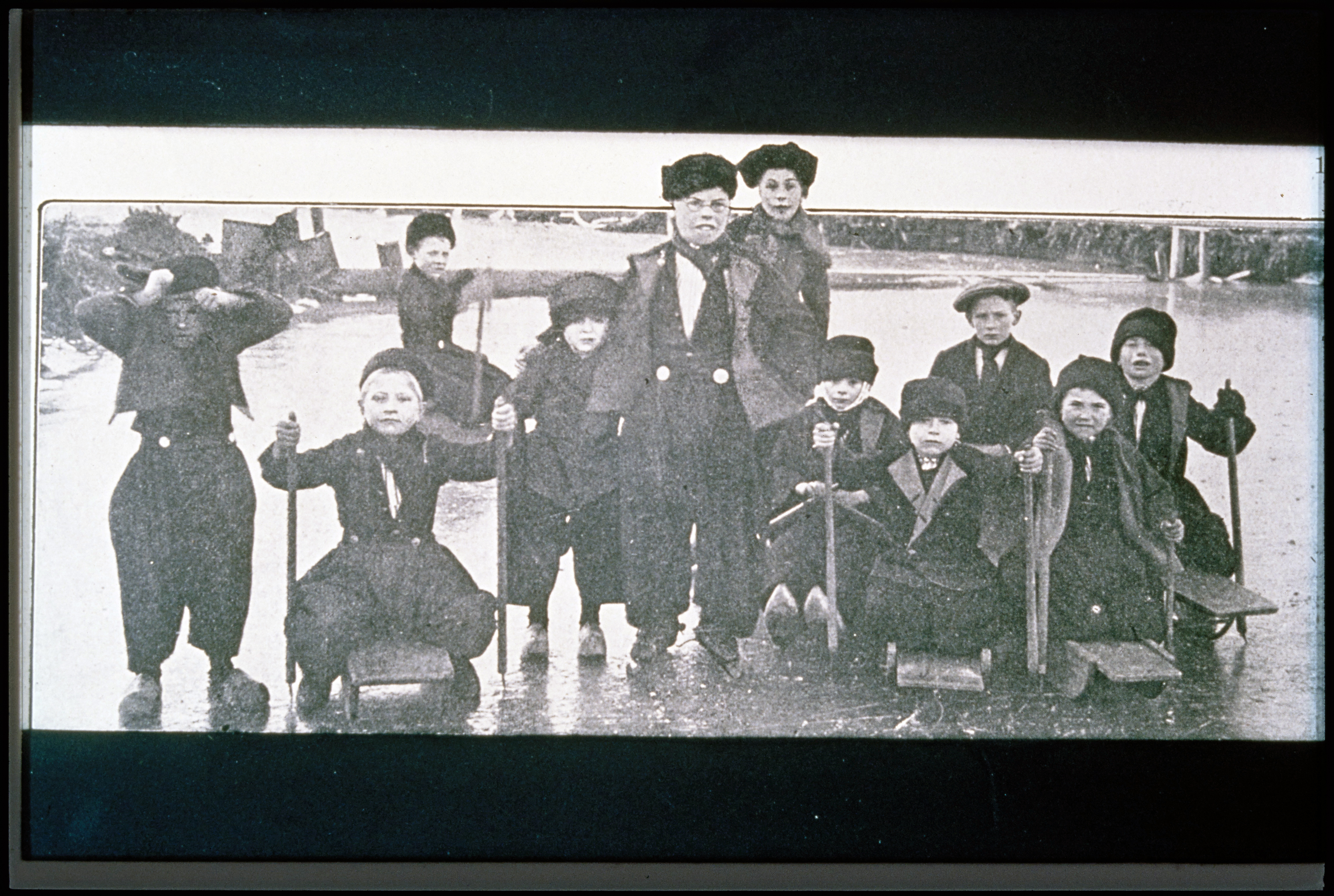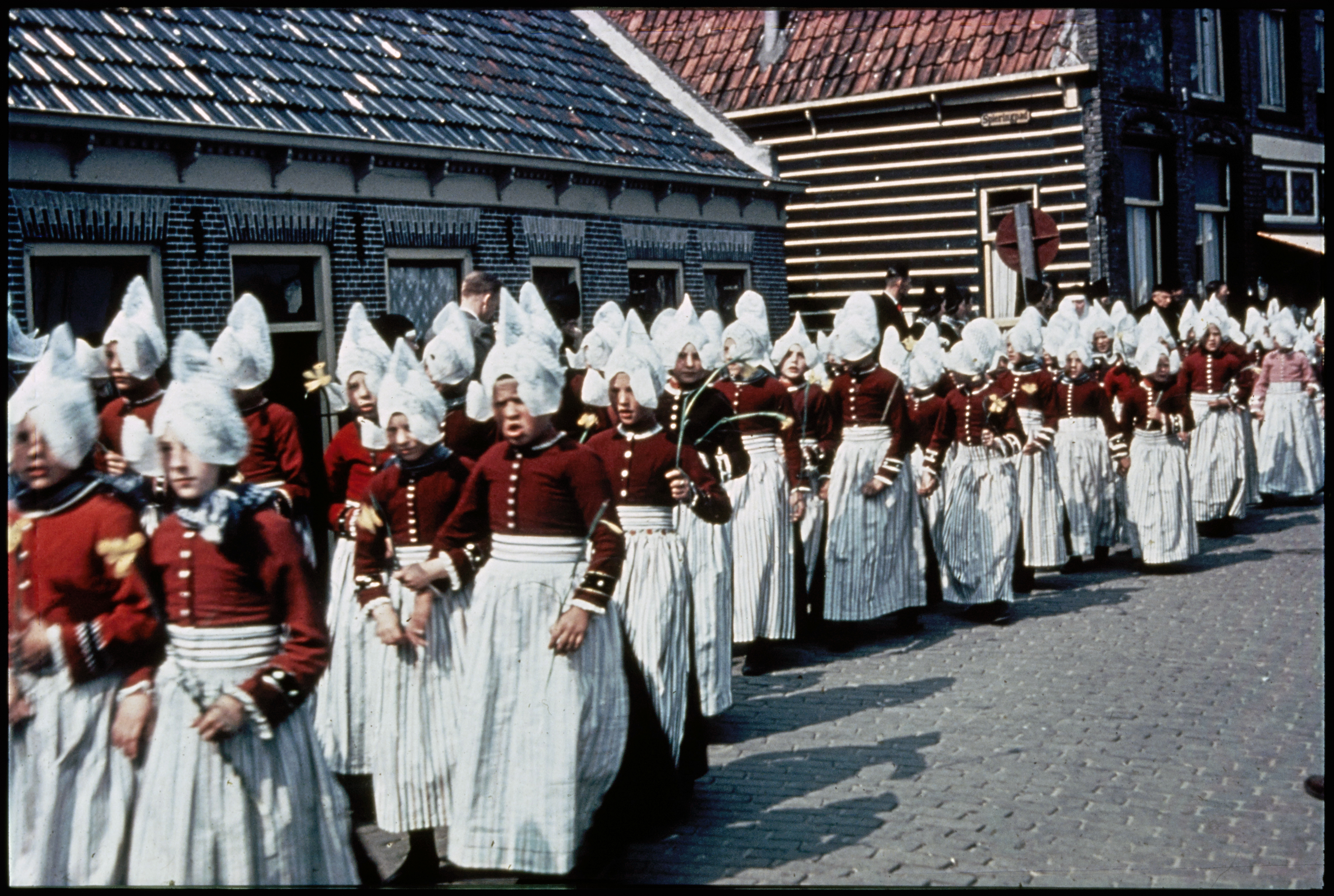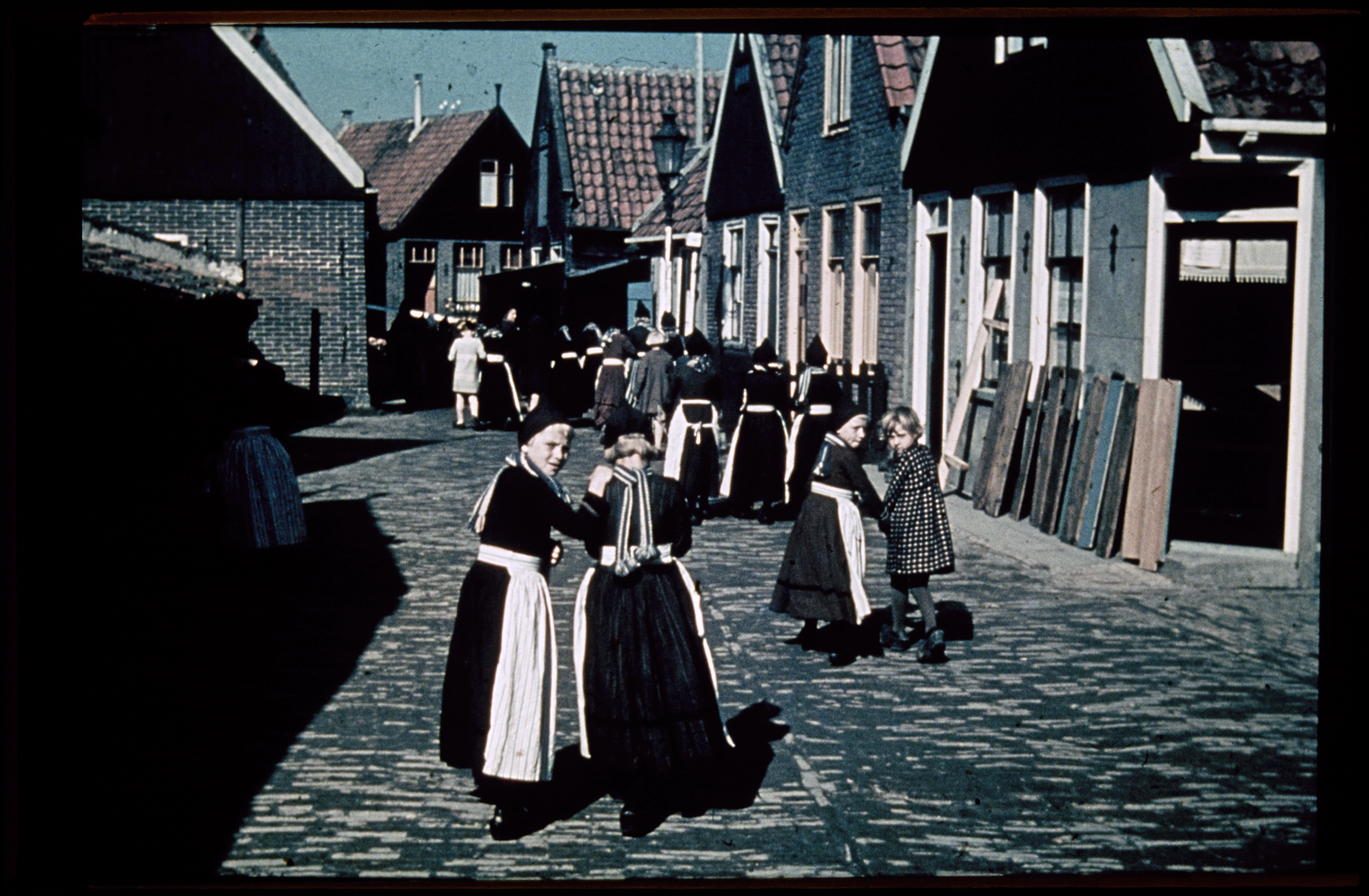 Straatbeeld met volendamse kinderen.