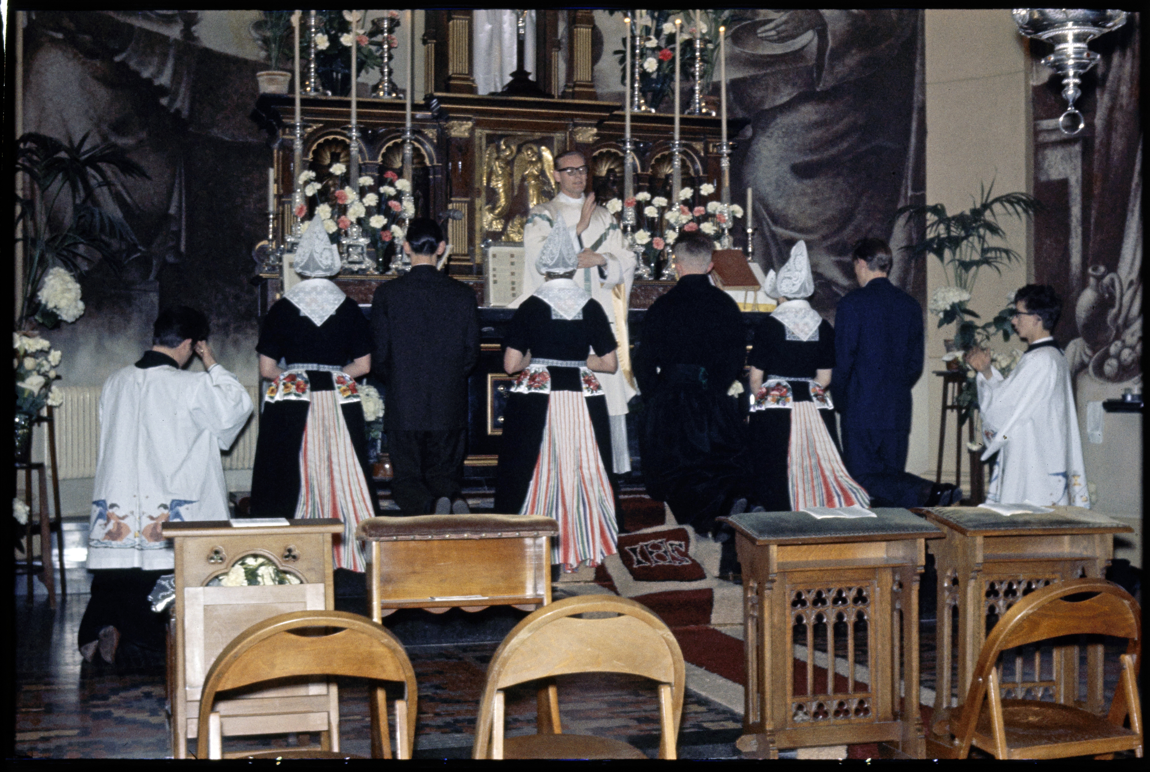 Volendammers in klederdracht ter kerk