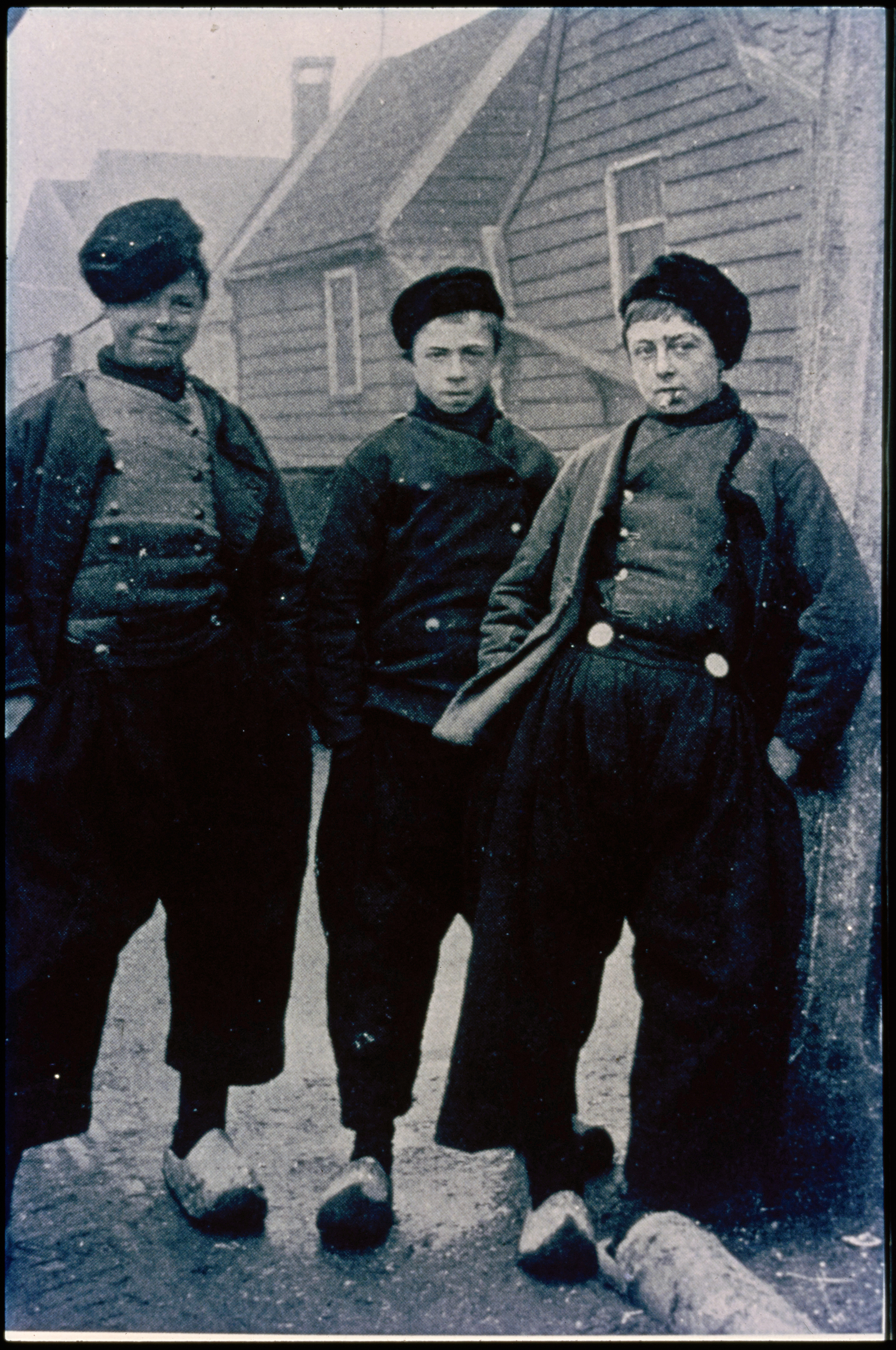 Drie volendammer jongens op straat