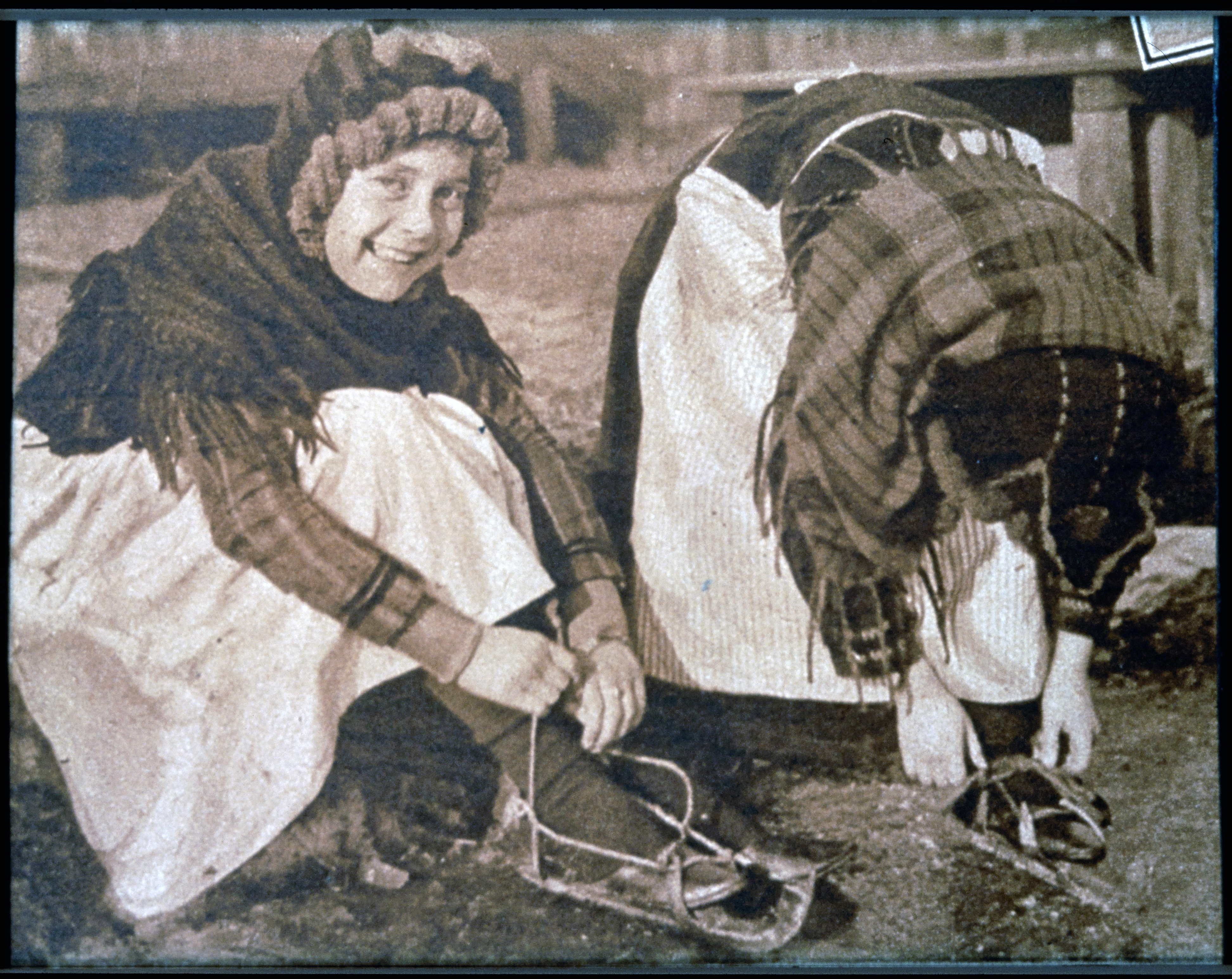 Twee meisjes in klederdracht.