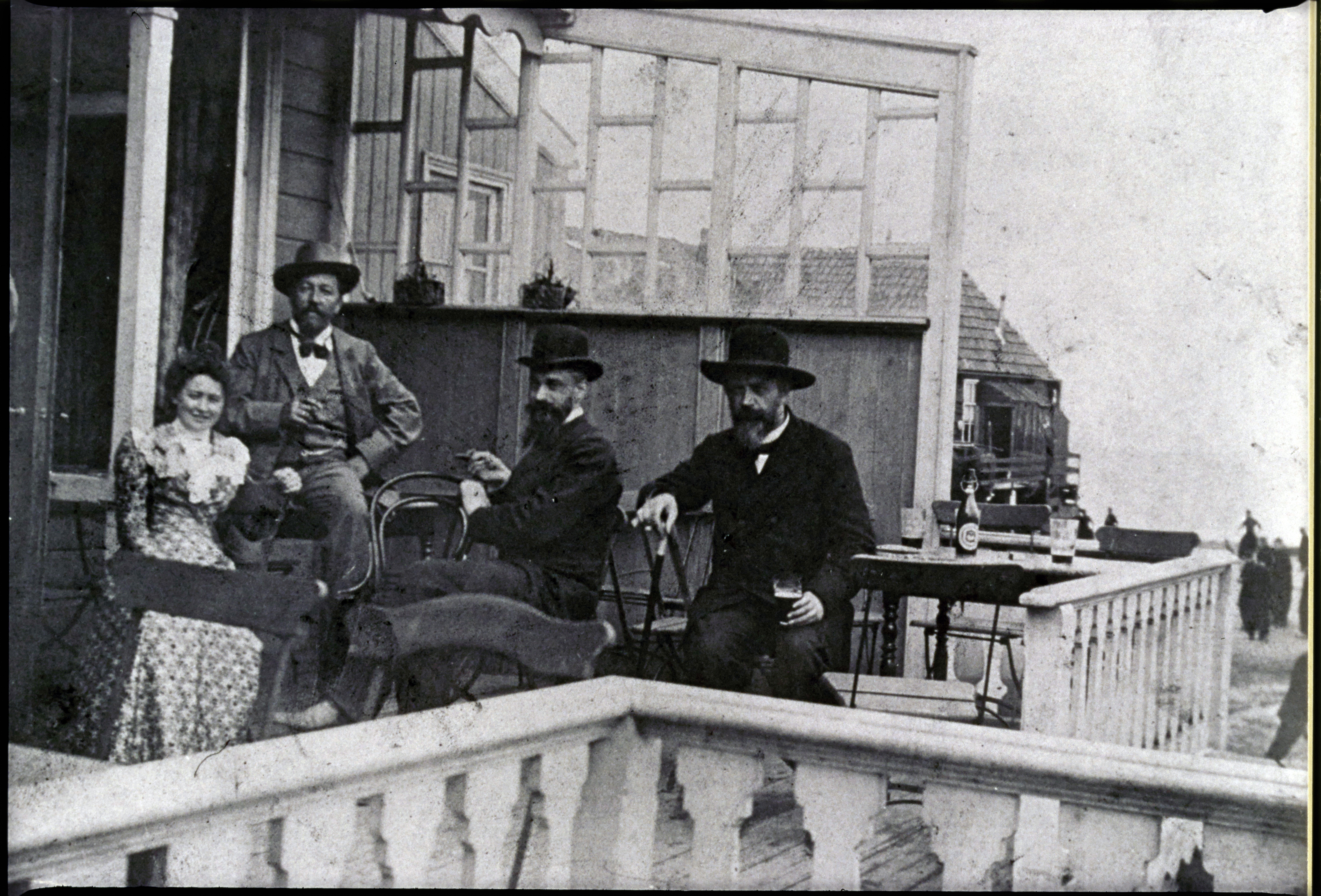 Kunstenaar op veranda van Spaander