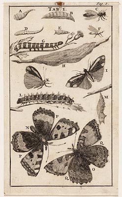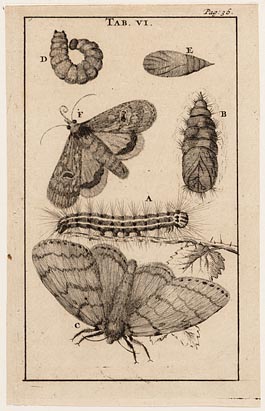 Rupsen, poppen en vlinders met aanwijzing A-F, pagin...