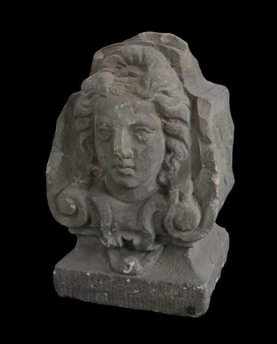 Basement, vrouwenhoofd met krullend haar aan voorzij...