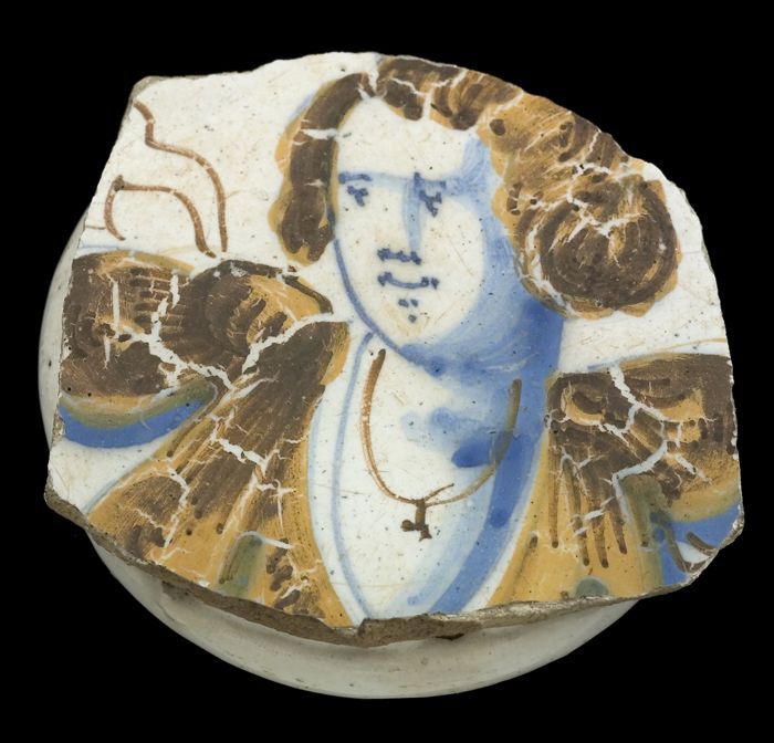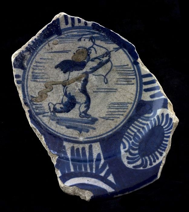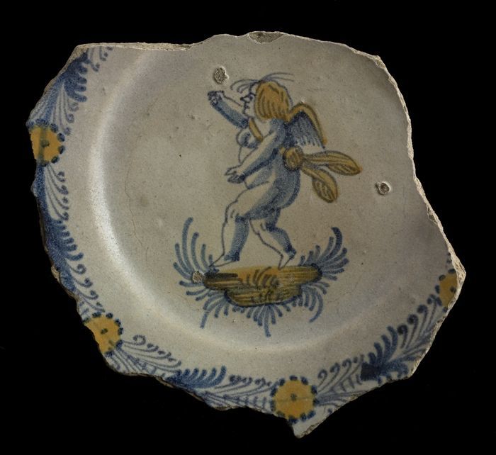 Fragment majolica schotel, polychroom, cupido, amor ...