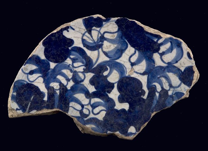 Fragment majolica schotel, blauw op wit, Chinees dec...