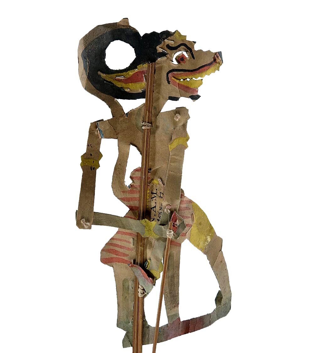Gekleurde papieren wajangpop, een aap, behorende bij...