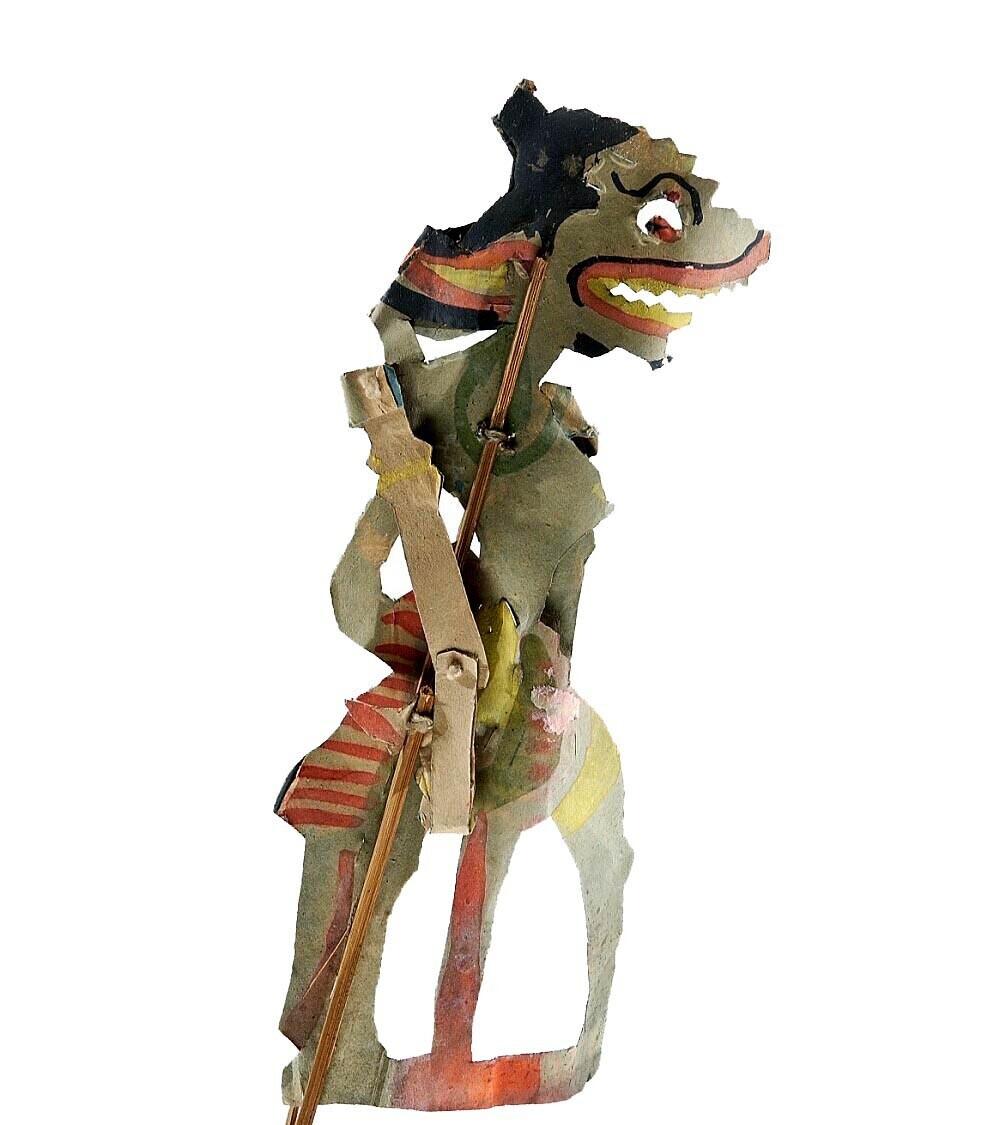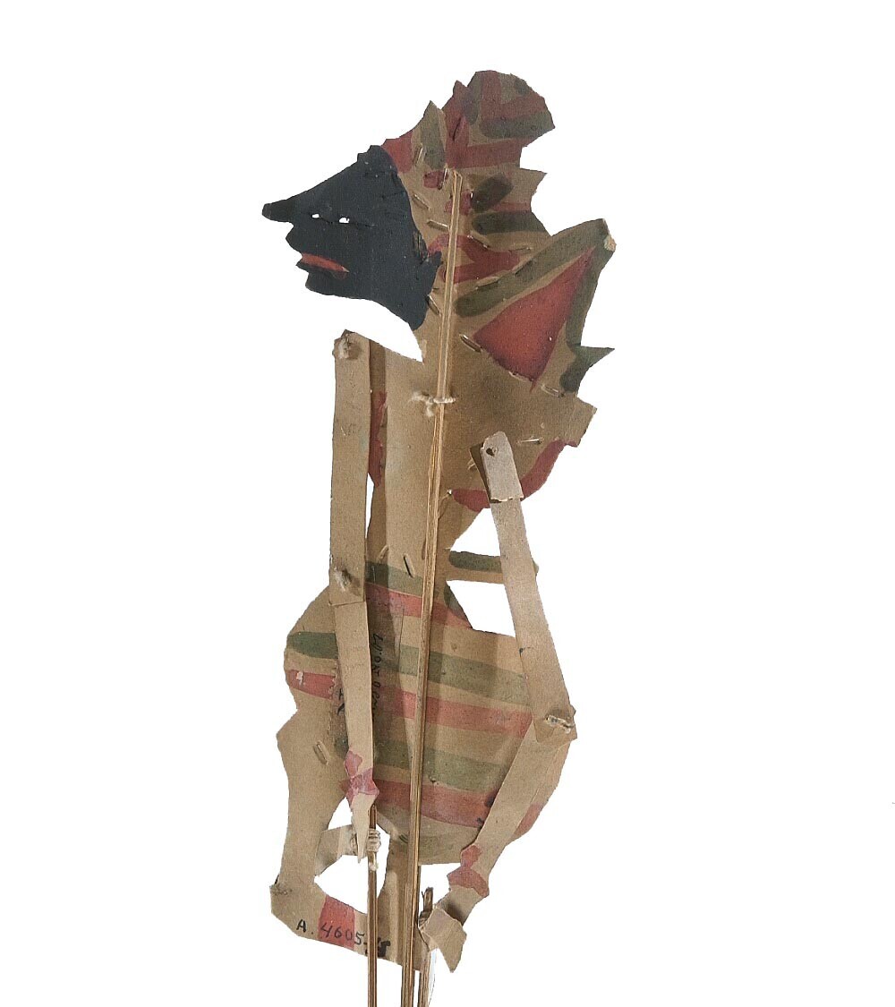 Gekleurde papieren wajangpop, mogelijk Petruk, behor...