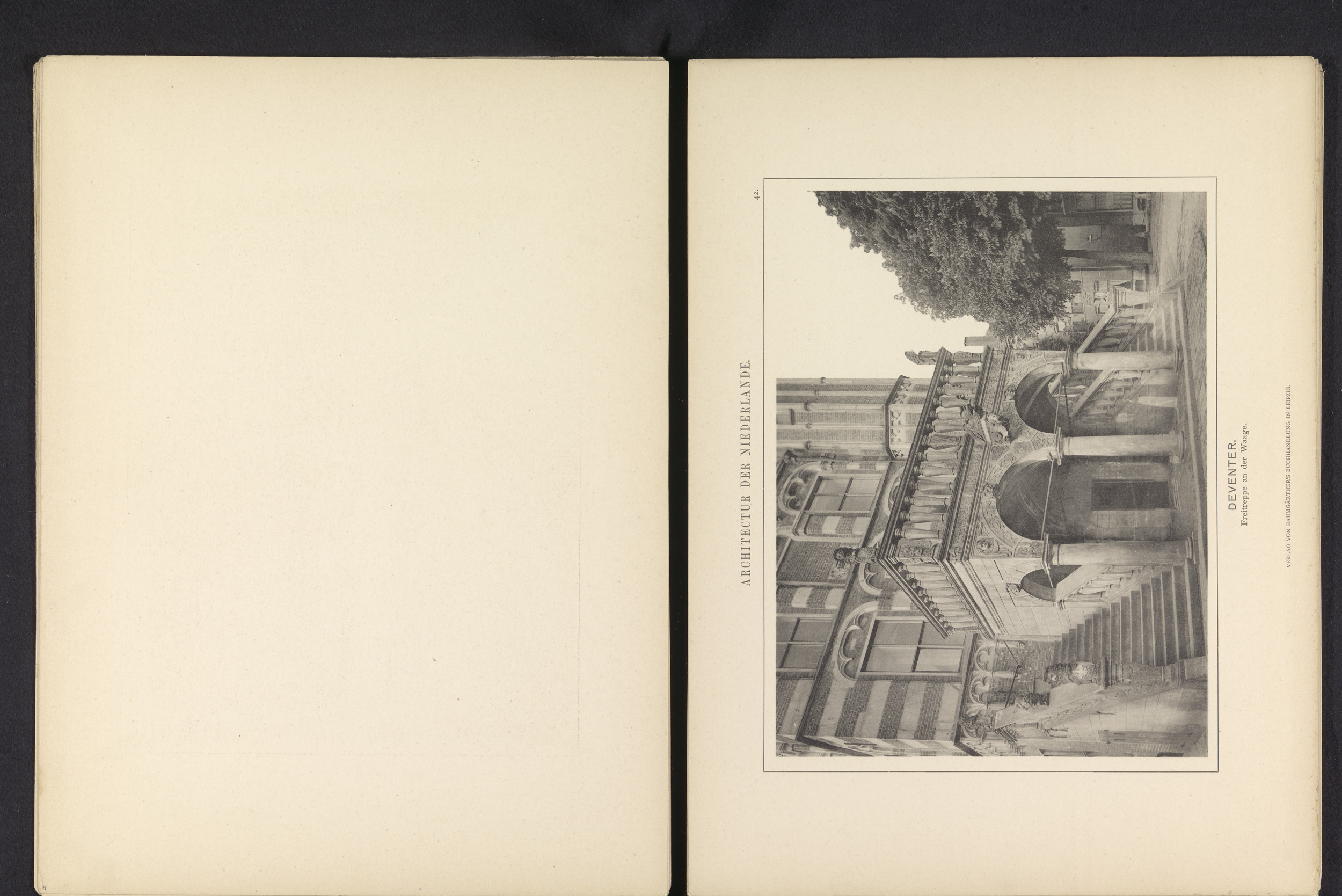 Gezicht op de trap van de Waag in Deventer