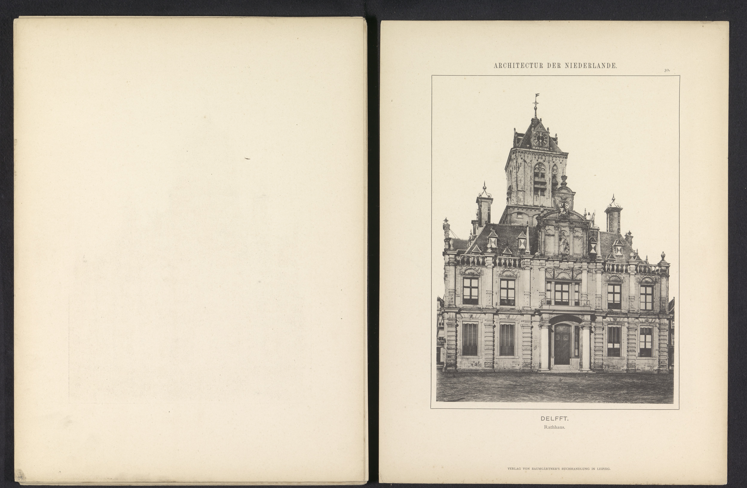 Gezicht op het stadhuis van Delft