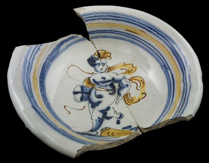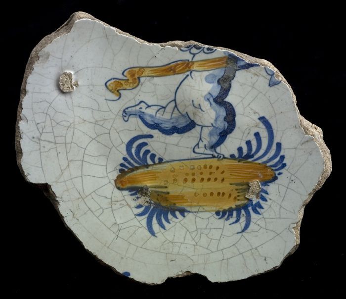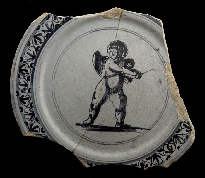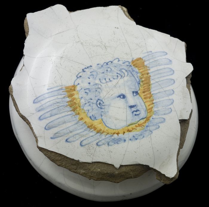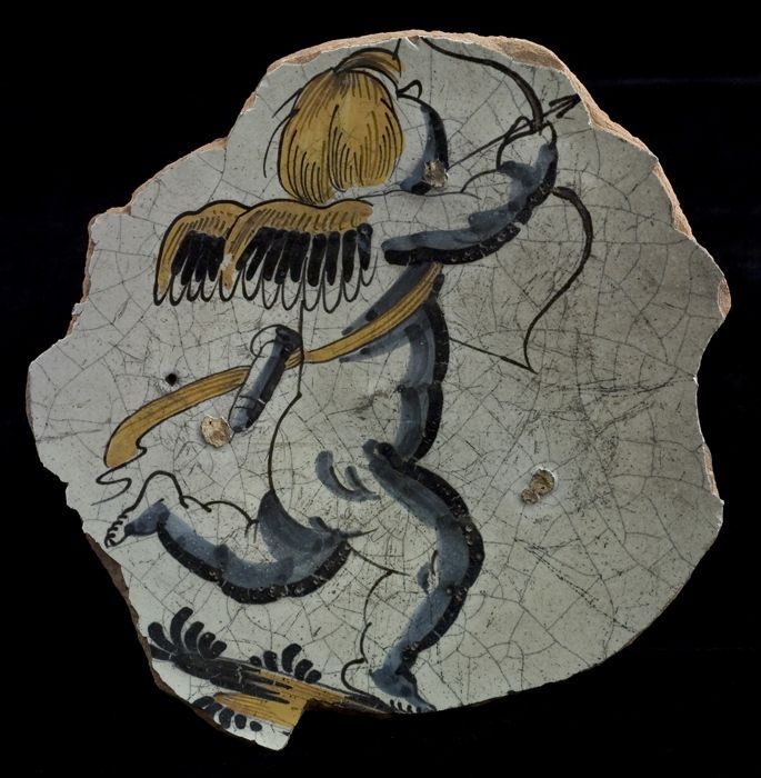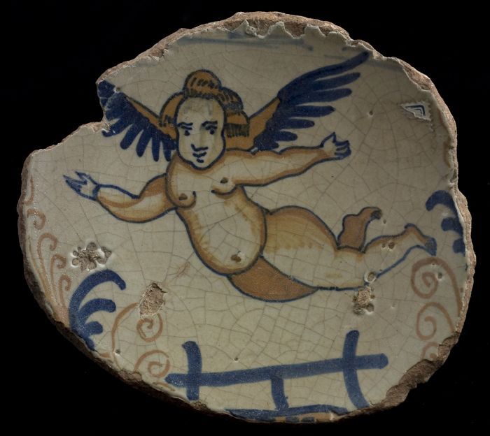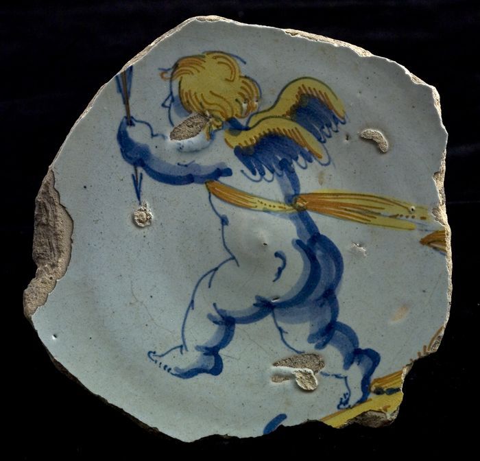 Fragment majolica schotel, polychroom, Amor of Cupid...