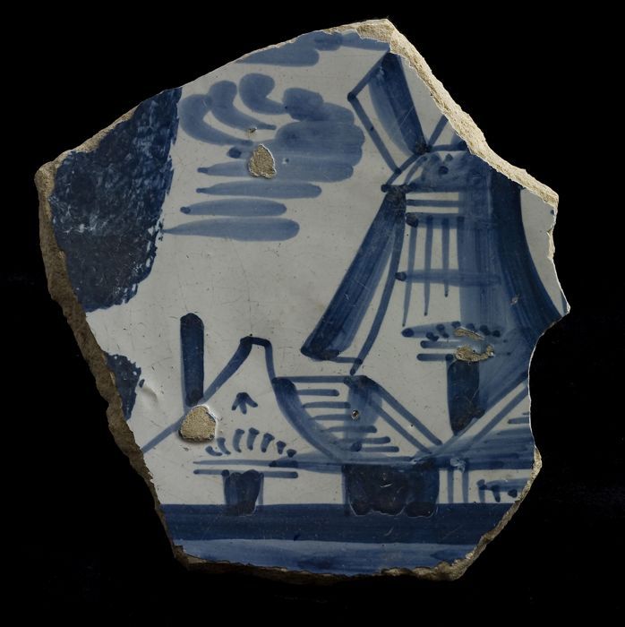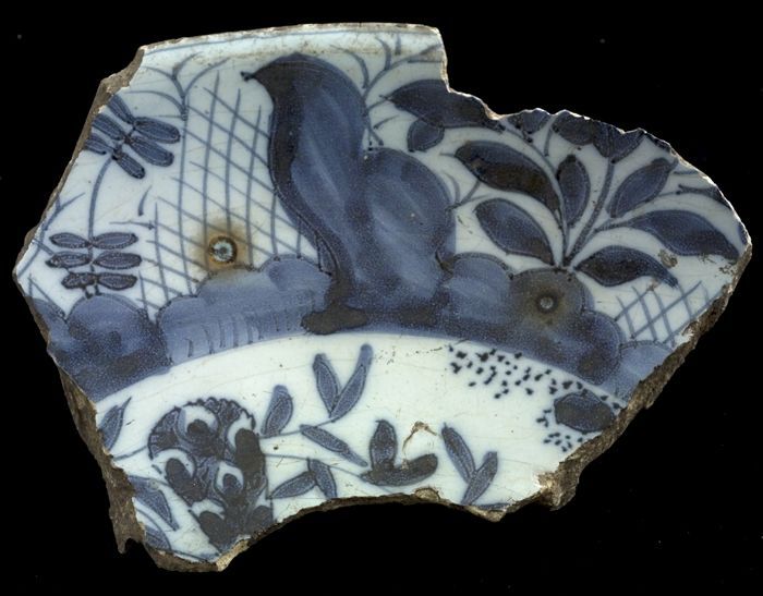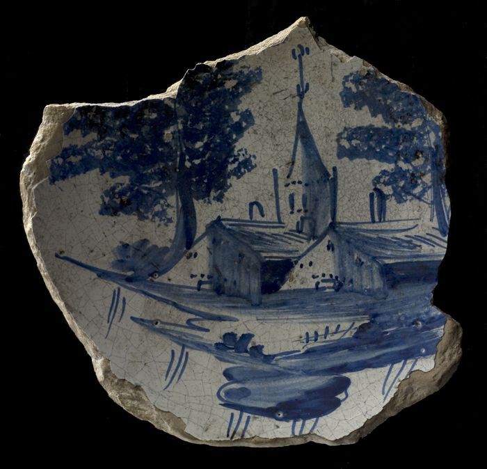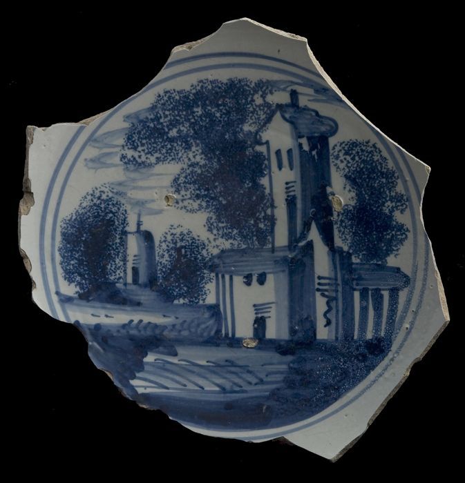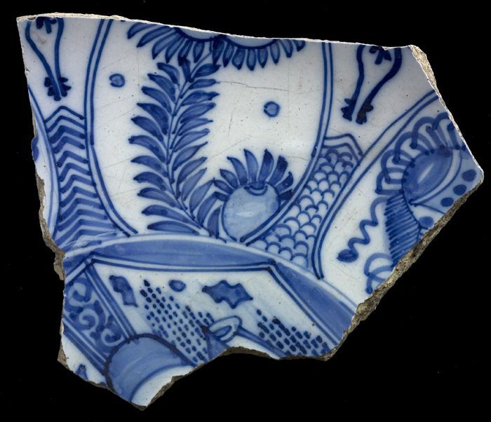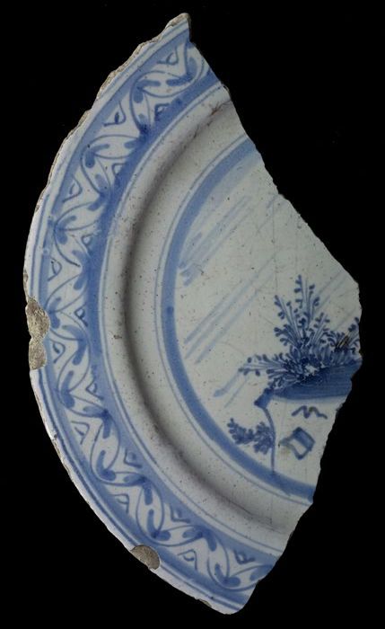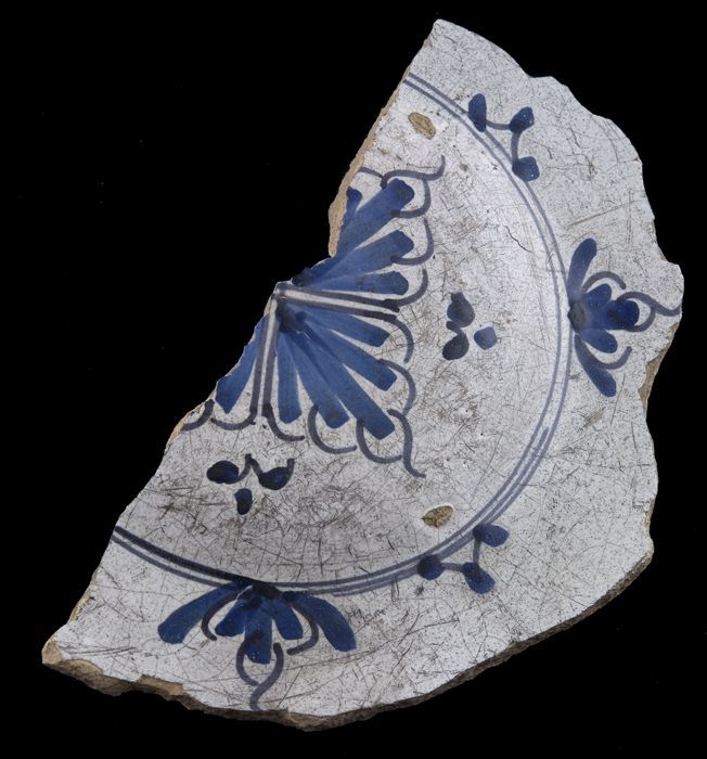 Fragment majolica schaal of kom, blauw op wit, lands...