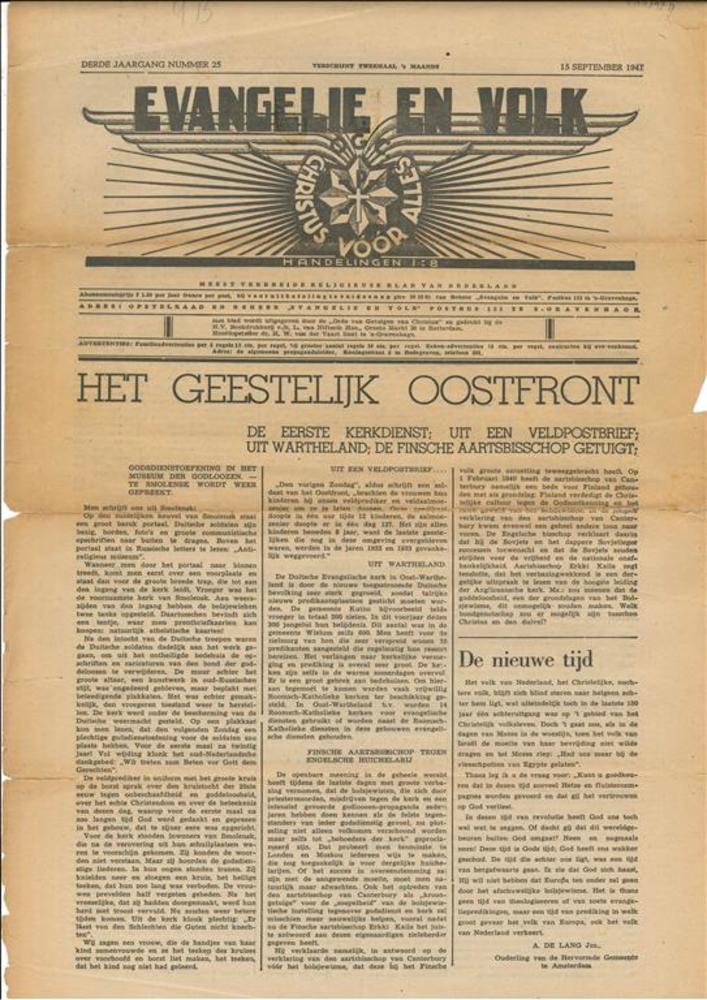 Evangelie en Volk, Derde Jaargang No 25, 15 Septembe...