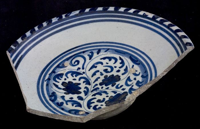 Fragment majolica schotel, blauw op wit, eenvoudige ...