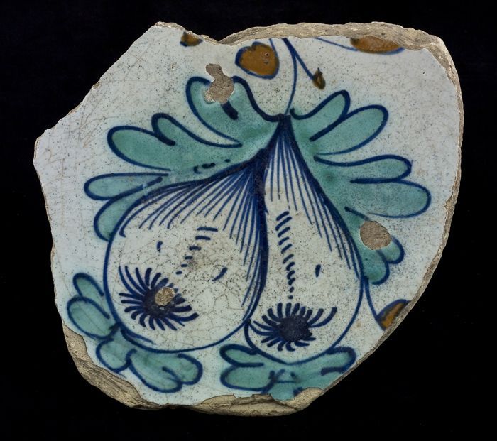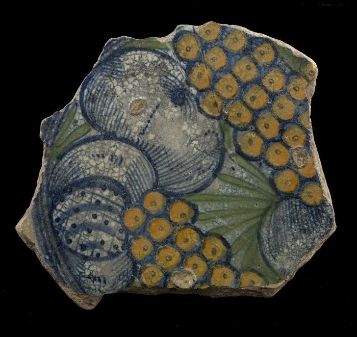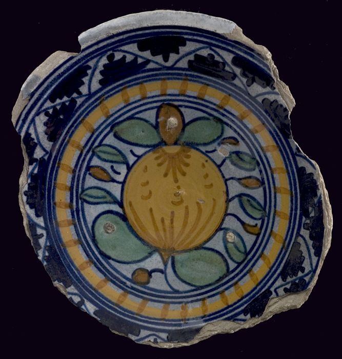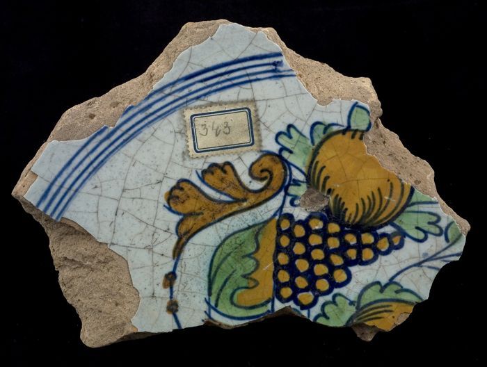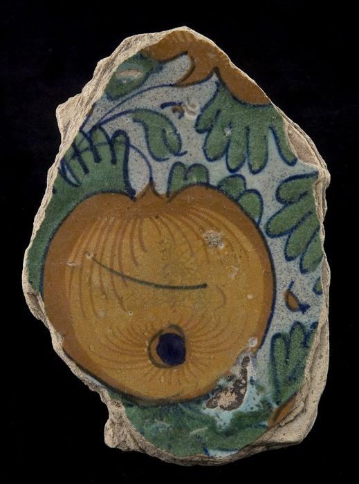 Fragment majolica schotel, polychroom, granaatappel ...