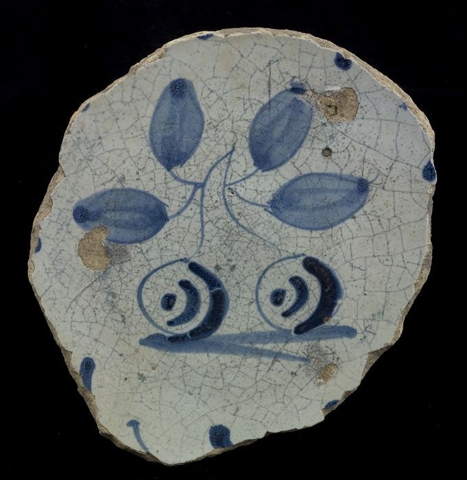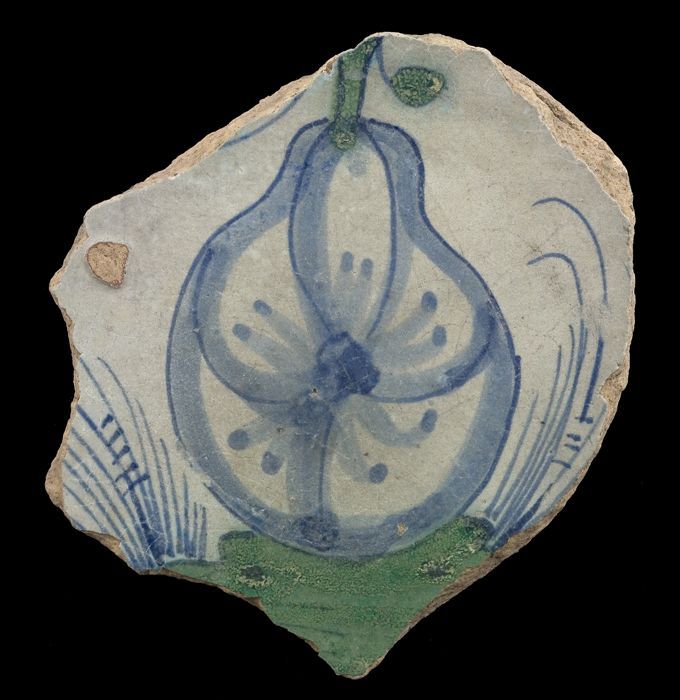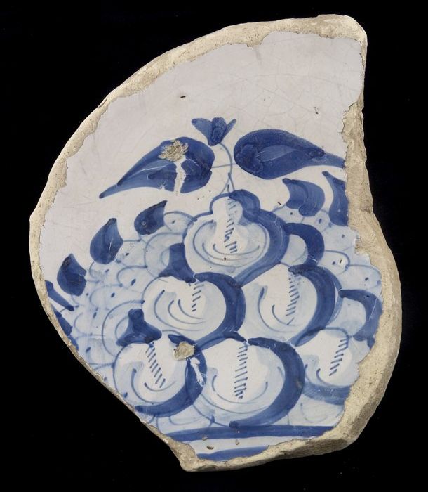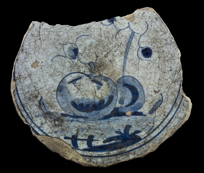 Fragment majolica schotel, blauw op wit, met appels ...