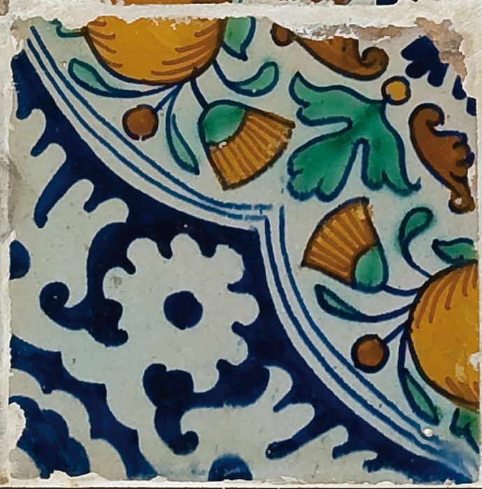 Fragment majolica schotel, polychroom, rozet en ster...