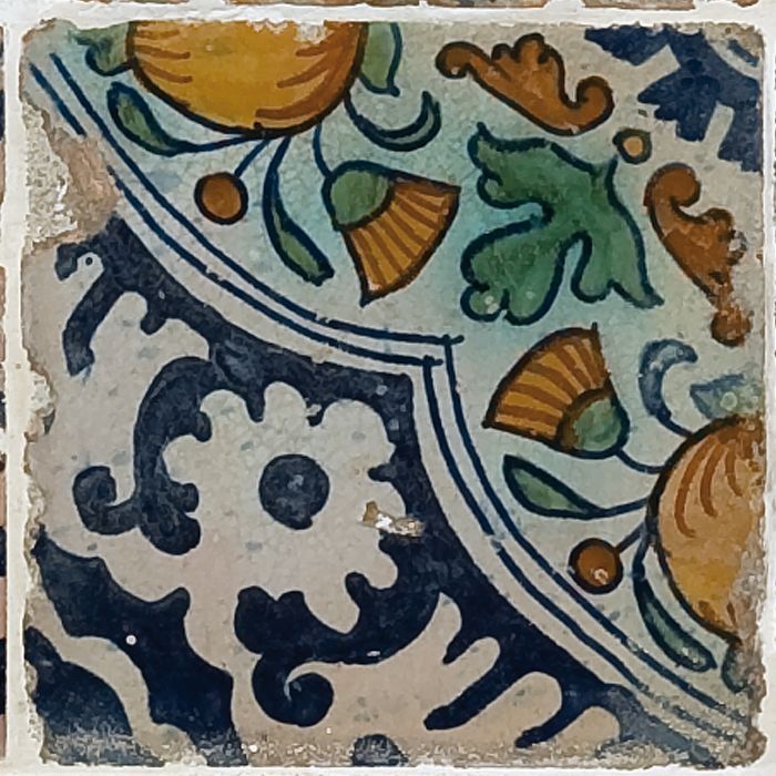 Fragment majolica schotel, blauw, geel, groen, wit e...