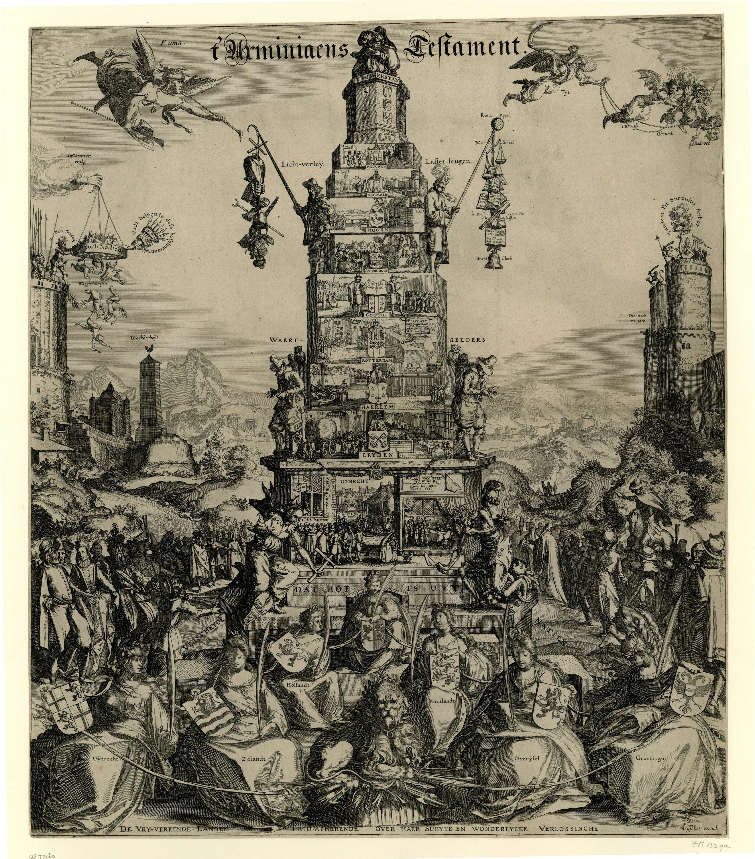 Titelprent van het pamflet: Den Arminiaenschen Dreck...