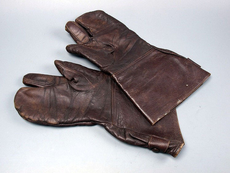 Kleding, handschoenen van bruin leer, 'Moffen', gedr...