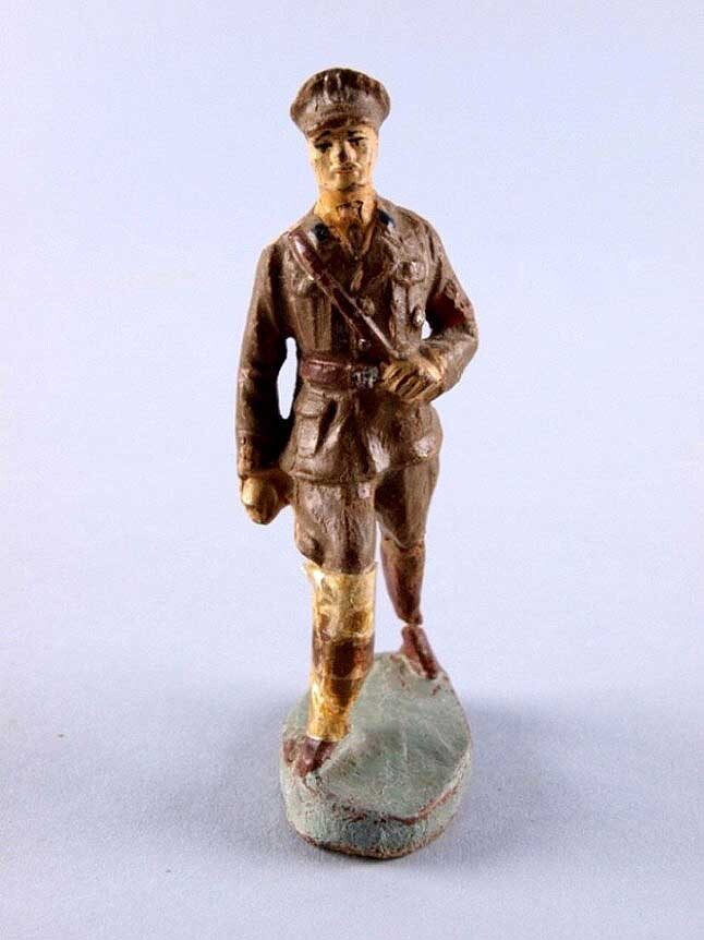 Twee speelgoed, figuur soldaat 'Lineol', marcherend ...