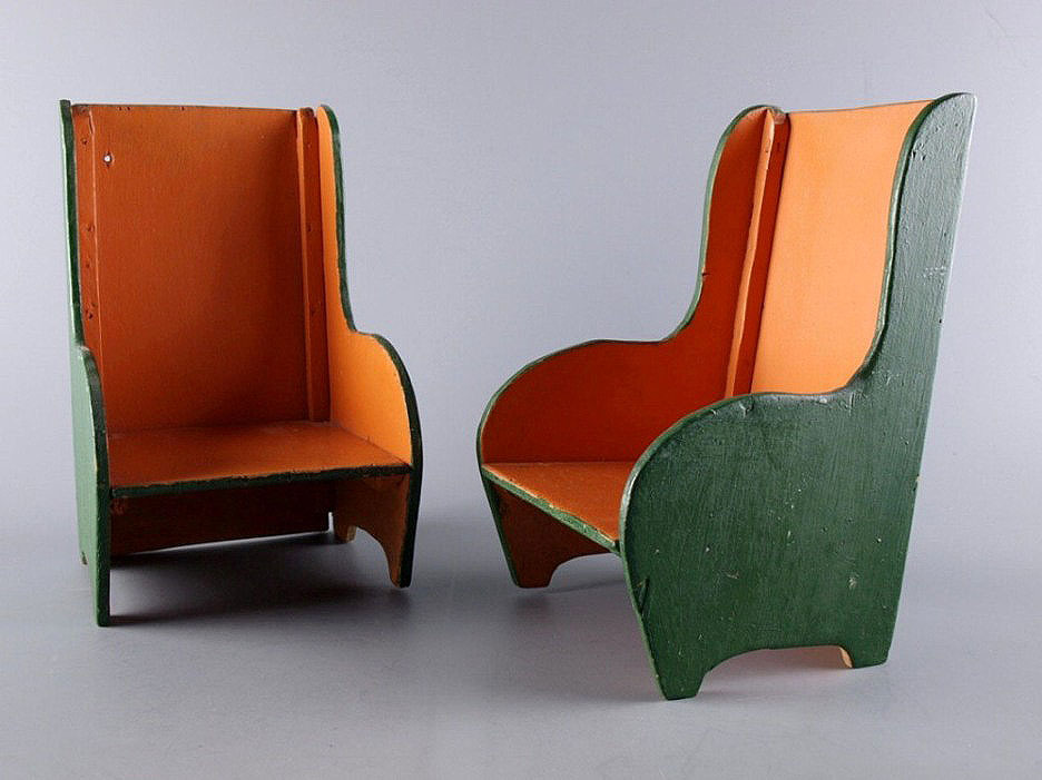 Speelgoed, poppenstoeltjes (groen, binnezijde oranje)