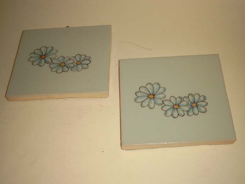Twee tegels met drie margrieten