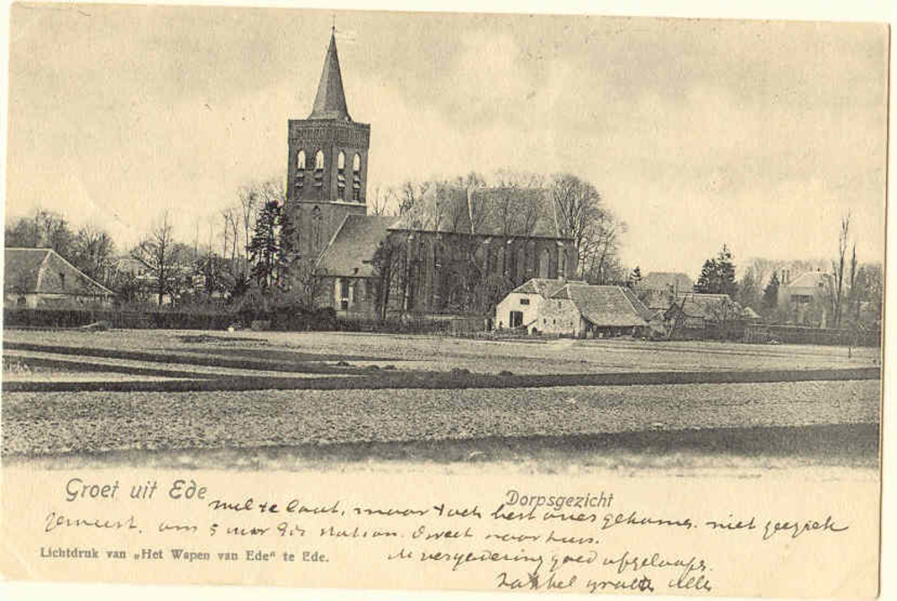 Dorpskiekje in Ede met toren Oude Kerk