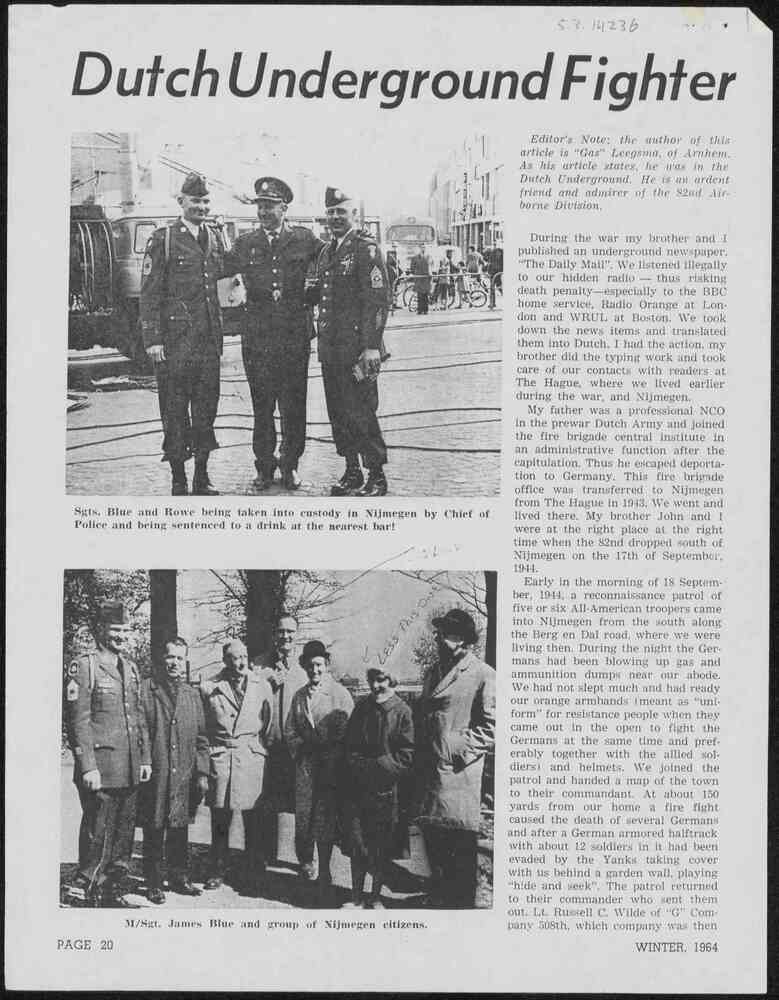 Dutch Underground Fighter, overdruk van tijdschrift,...