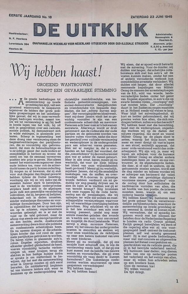 De Uitkijk, onafhankelijk weekblad voor Nederland, u...