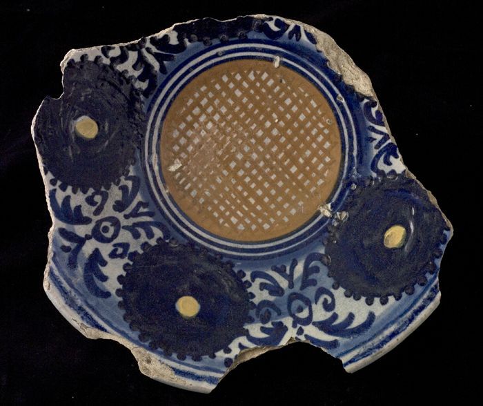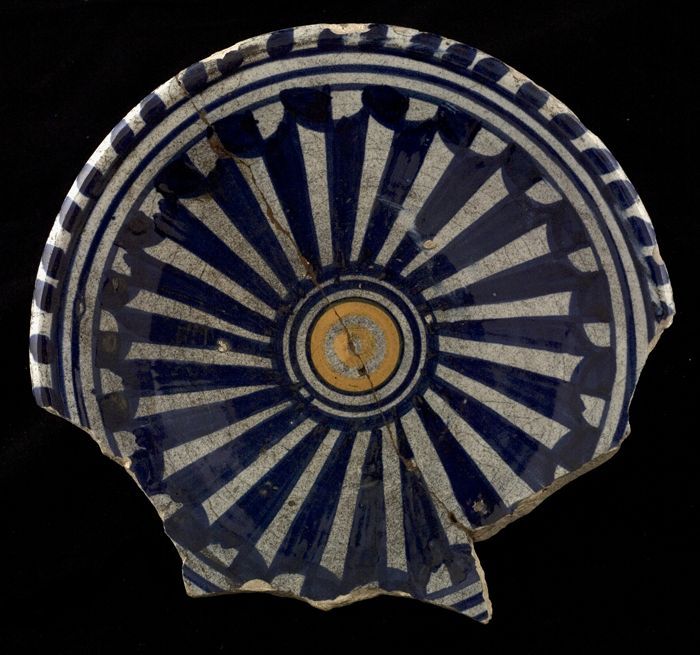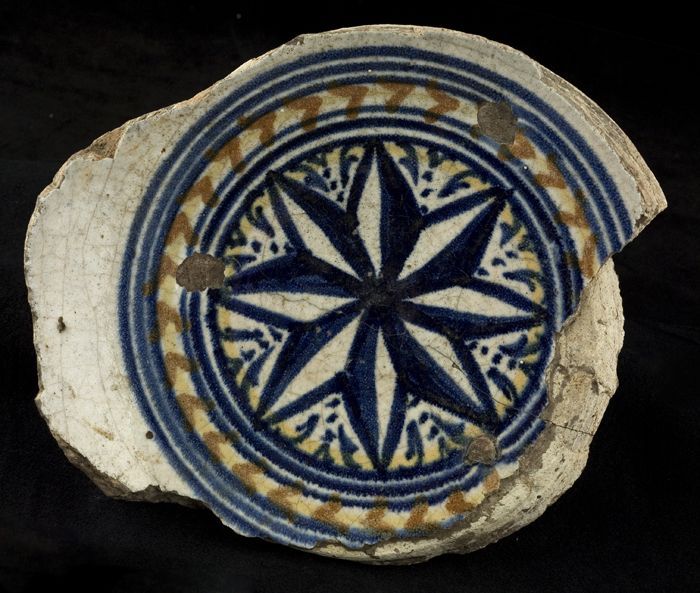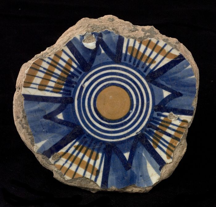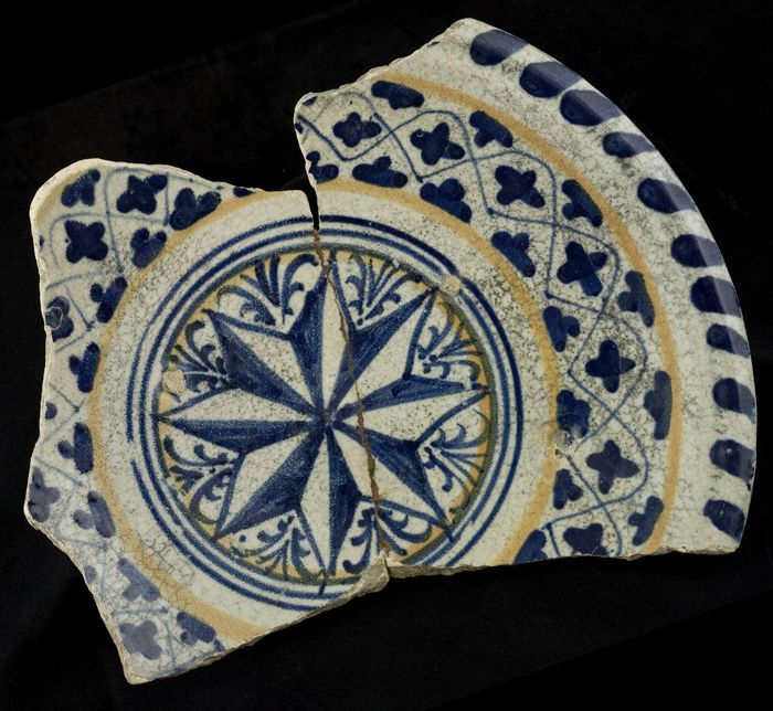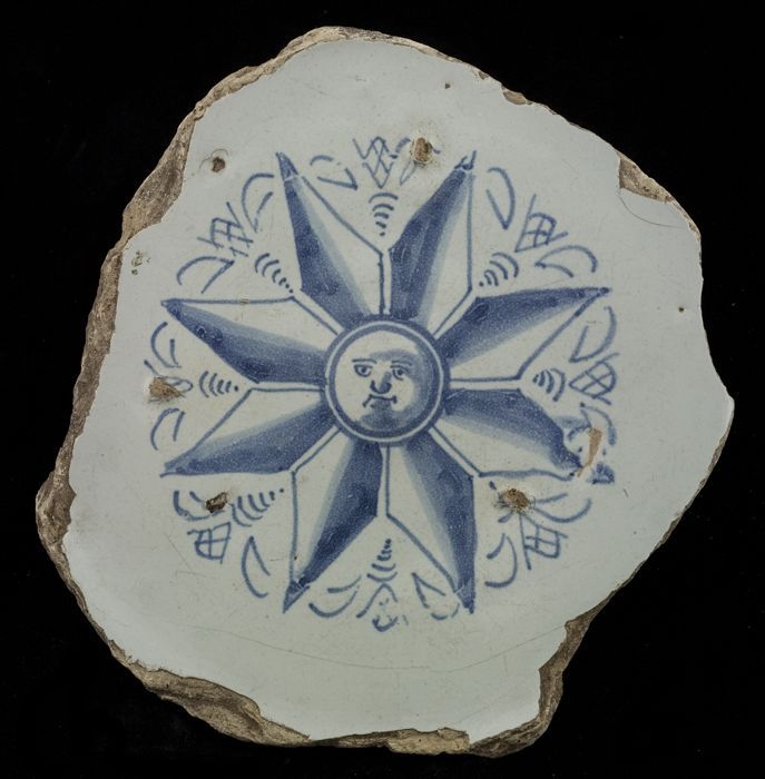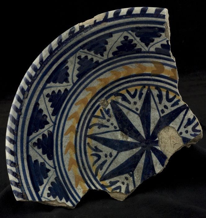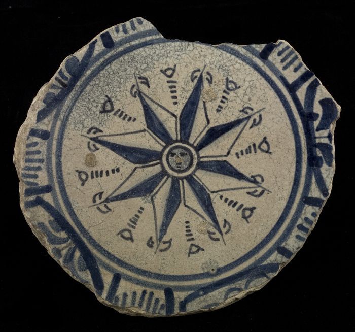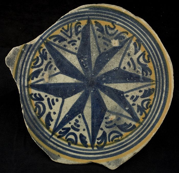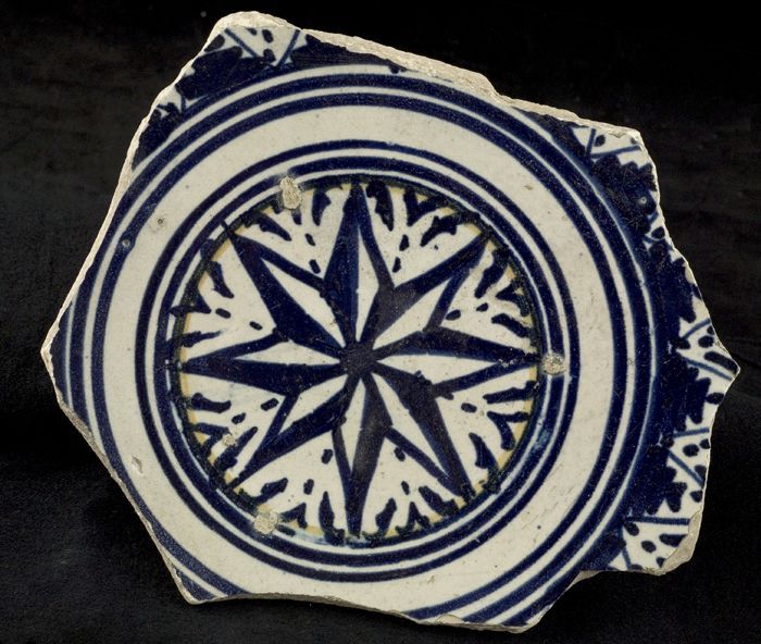 Fragment majolica schotel, blauw op wit, met achtpun...