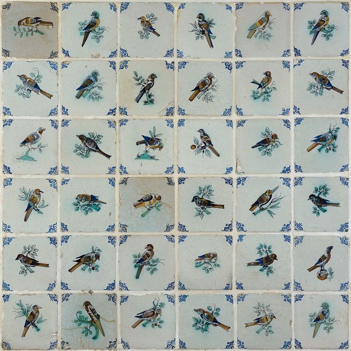 Dierentegel, tegelveld van 36 stuks, zes hoog en zes...