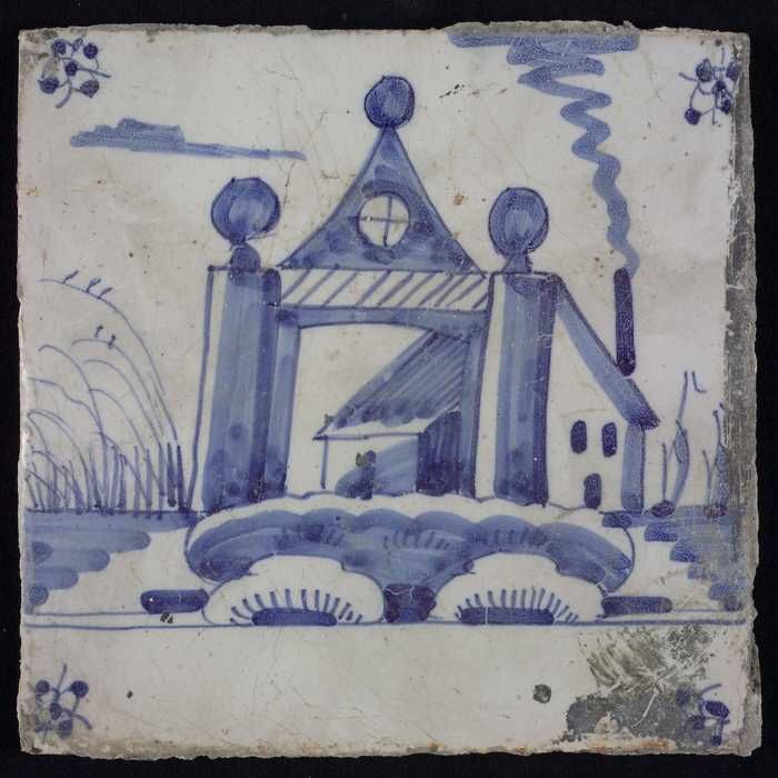 Tafereeltegel, blauw, huis met een grote poort met z...