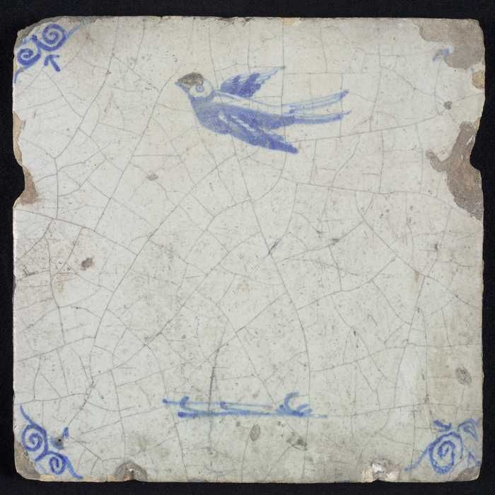 Dierentegel, vogel hoog vliegend, hoekmotief ossenkop