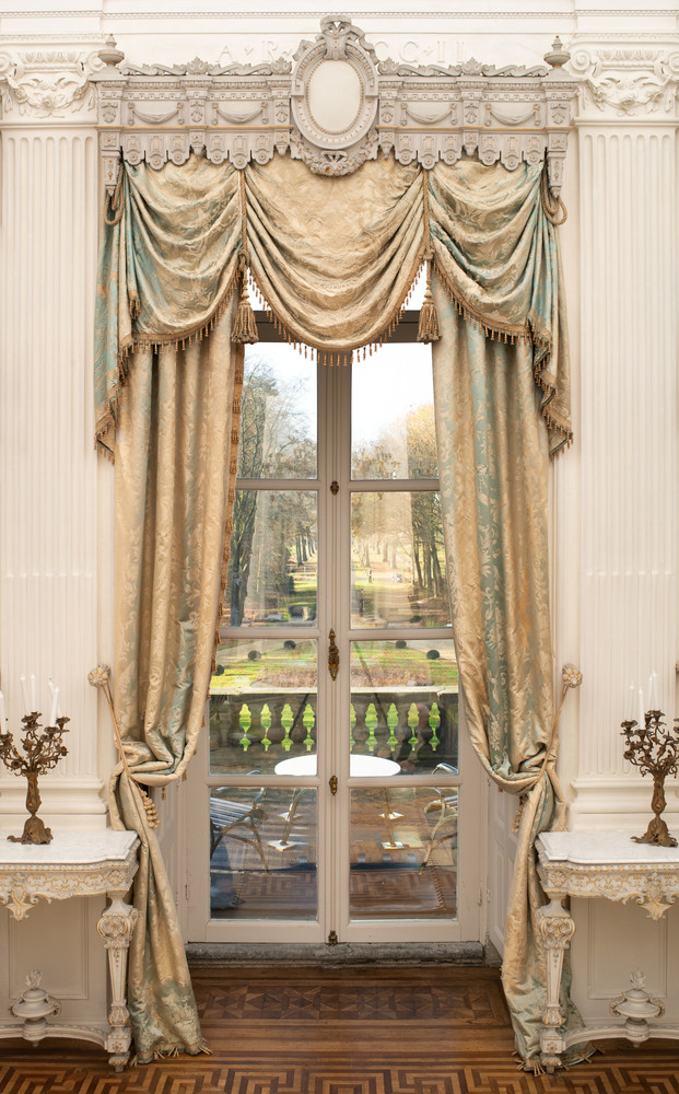 Drie sets gordijnen van blauw zijde