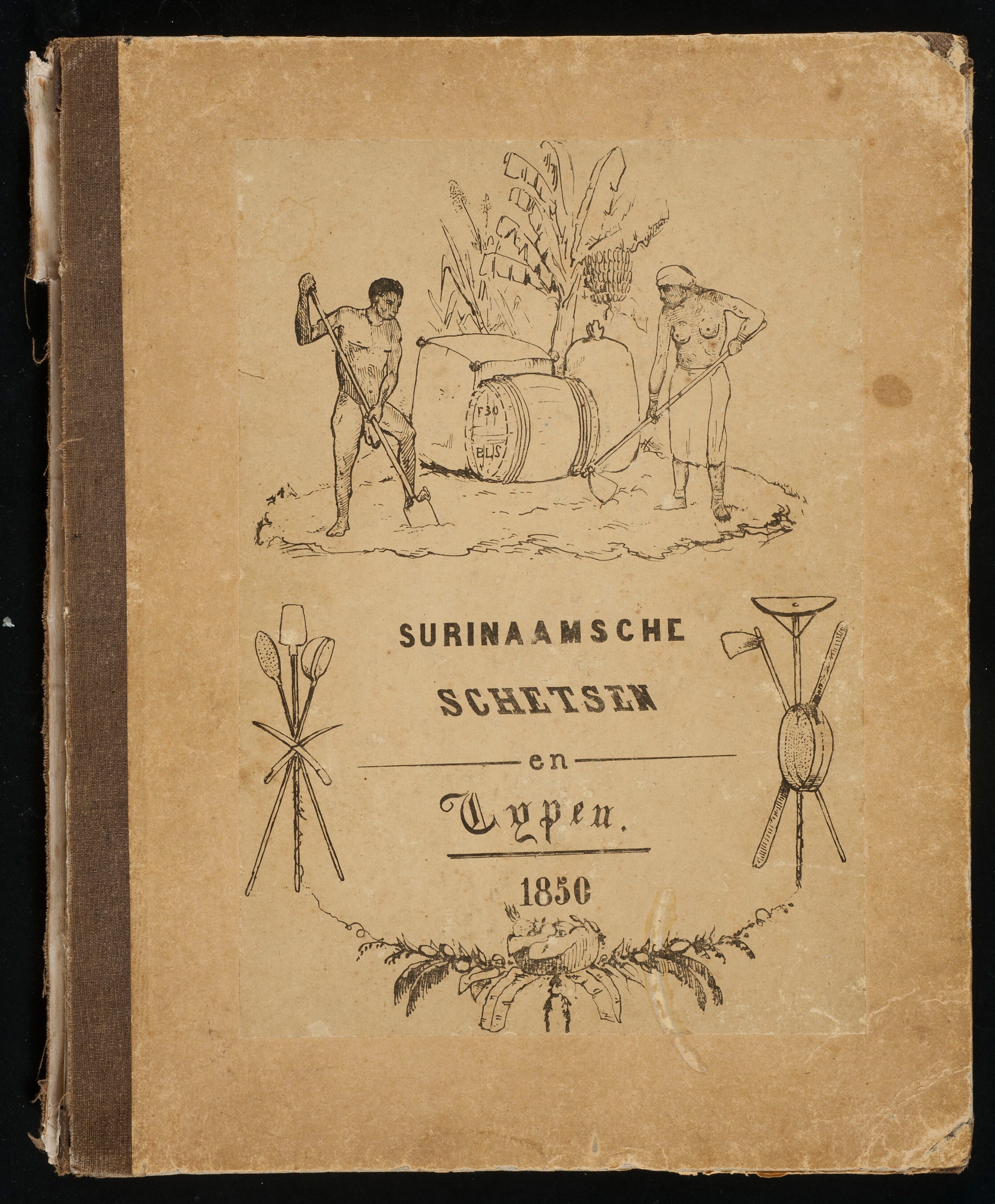 Ingekleurde litho van een zittende tot slaaf gemaakt...