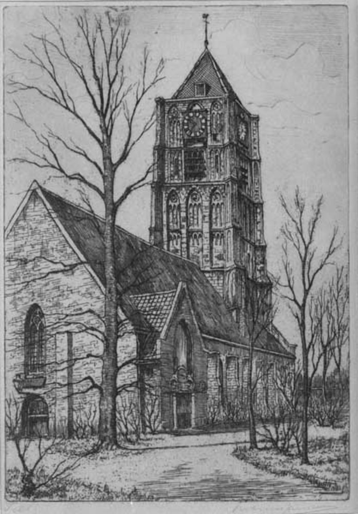 Ets, voorstellende de St. Maartenskerk te Tiel, verv...