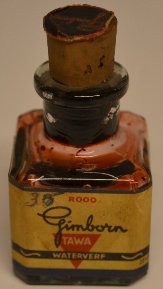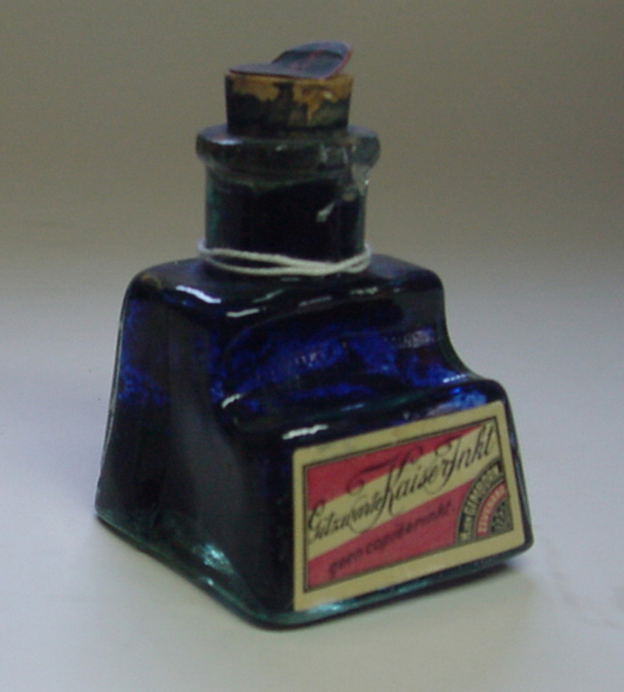 Inktfles van glas gevuld met gitzwarte Kaiserinkt do...