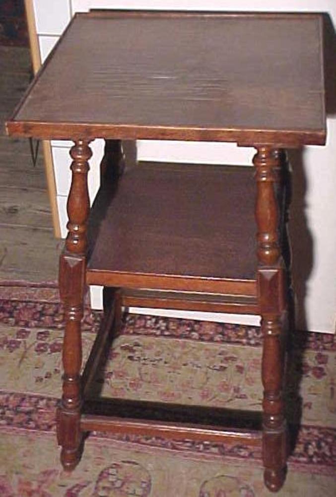 bijzettafel. Twee etages, vier gekrulde poten met ho...