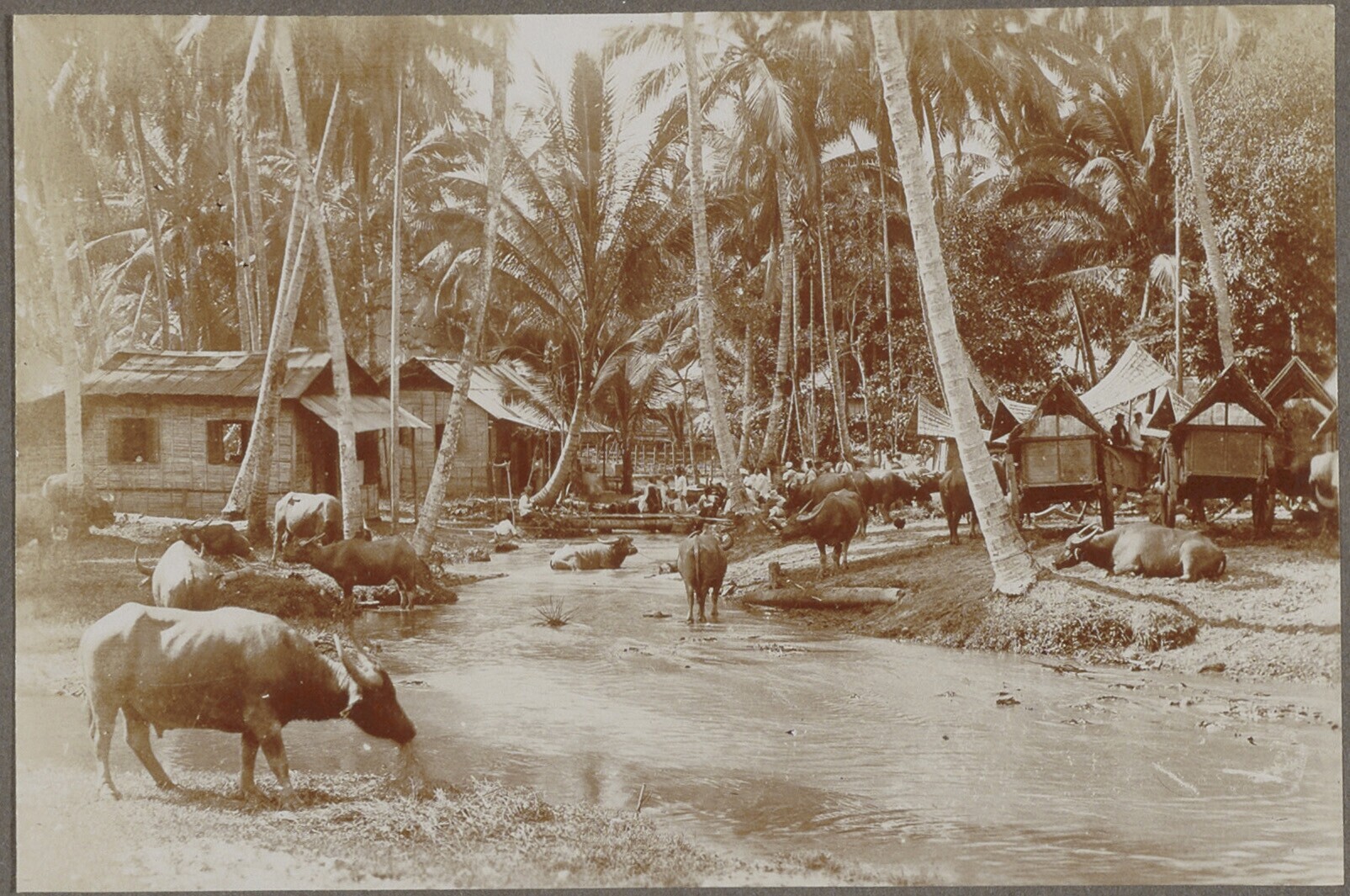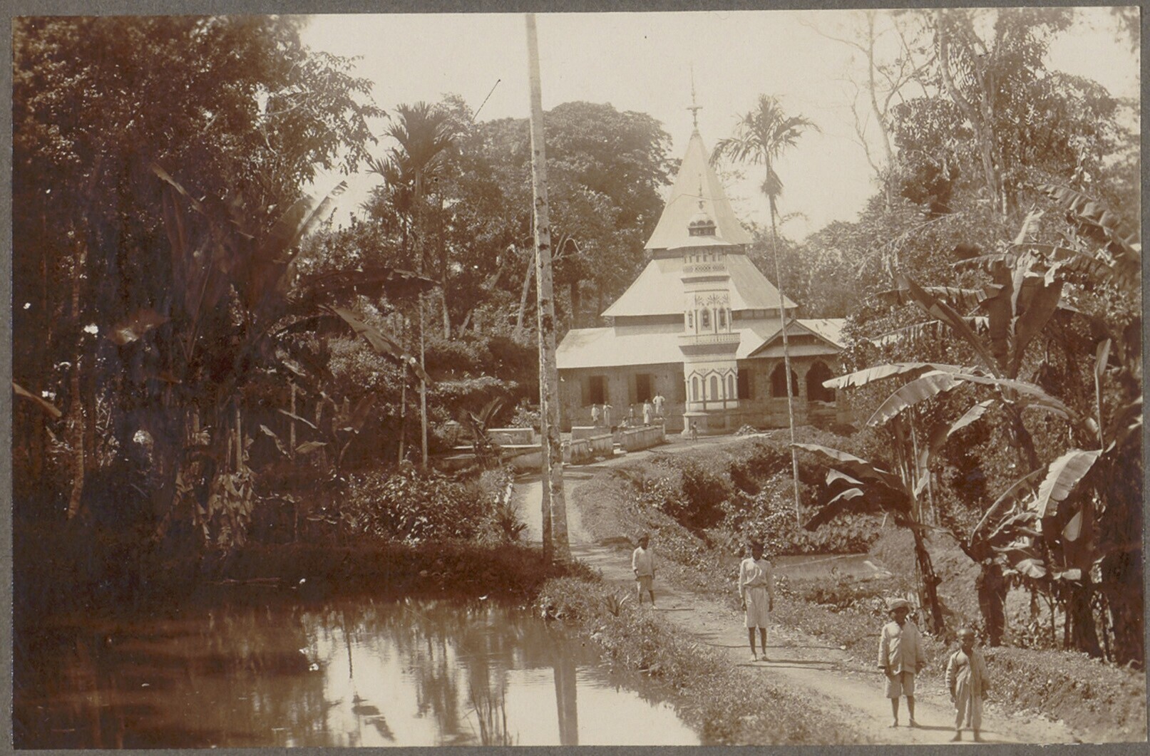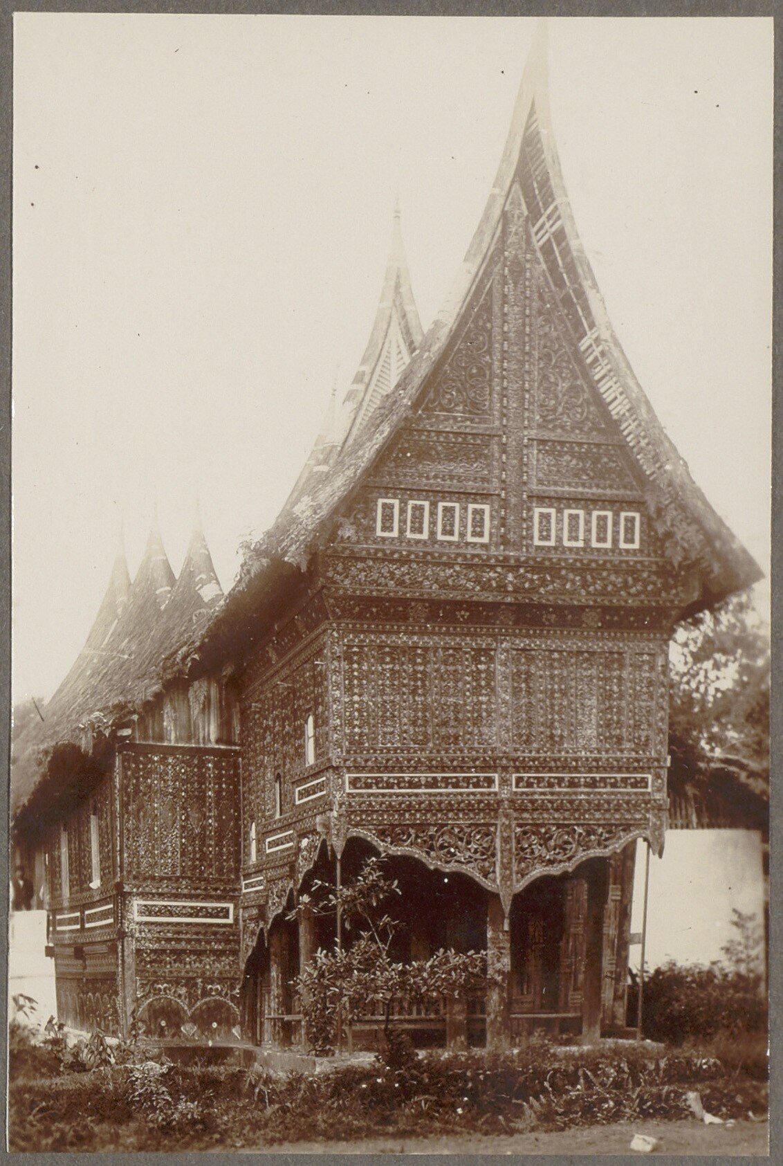 Minangkabau-huizen met daken van plaatijzer en daken...