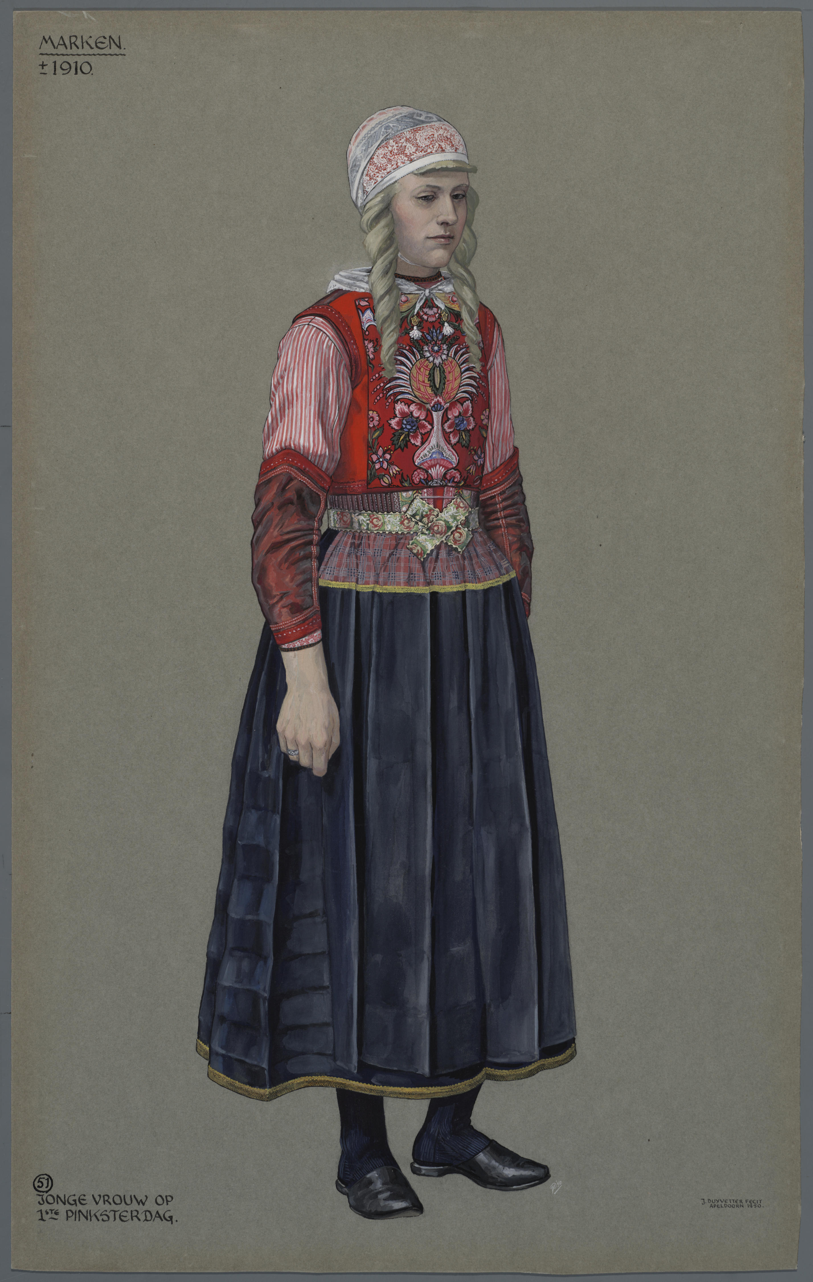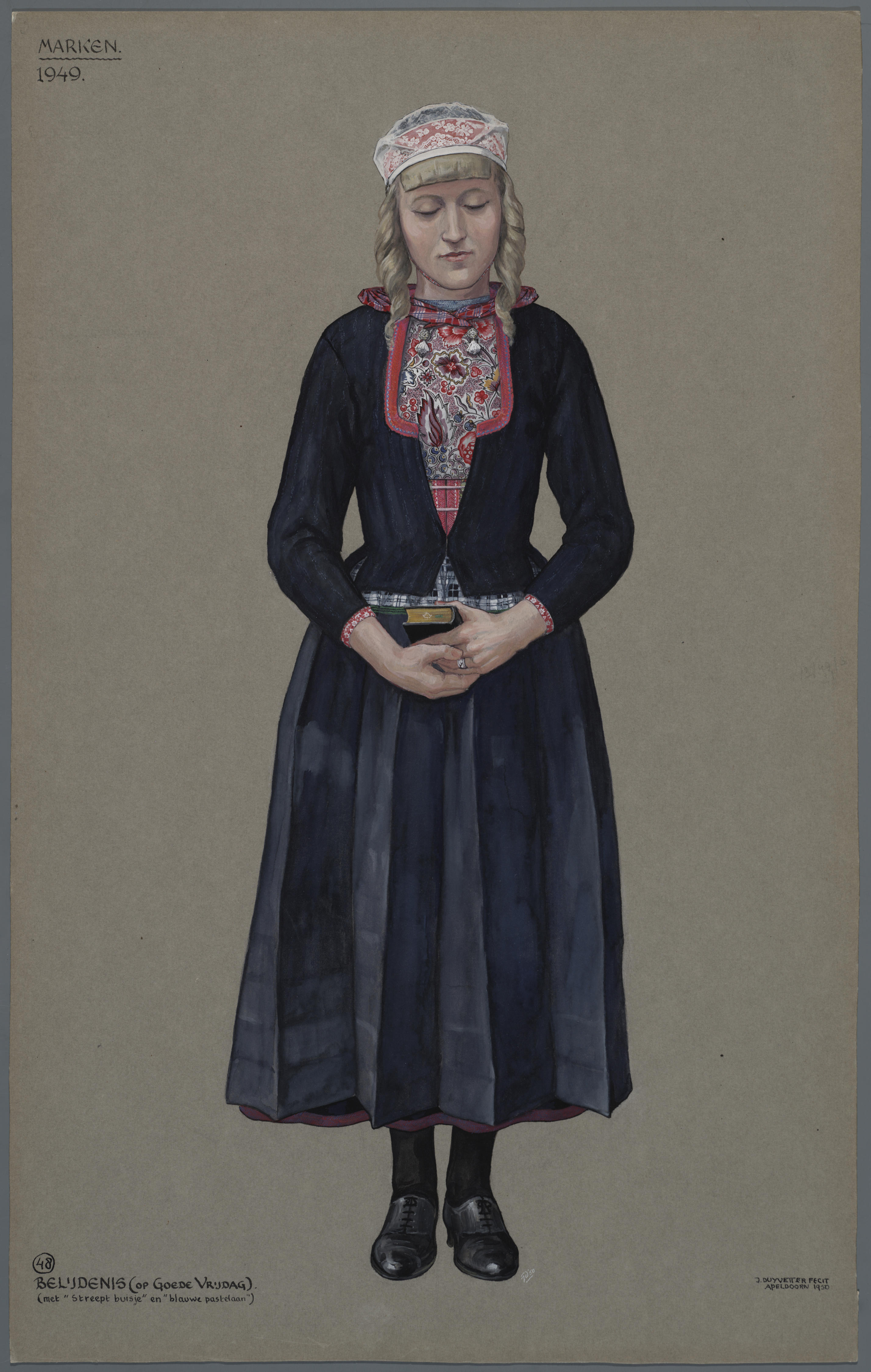 Vrouw in pinksterdracht, Marken 1949