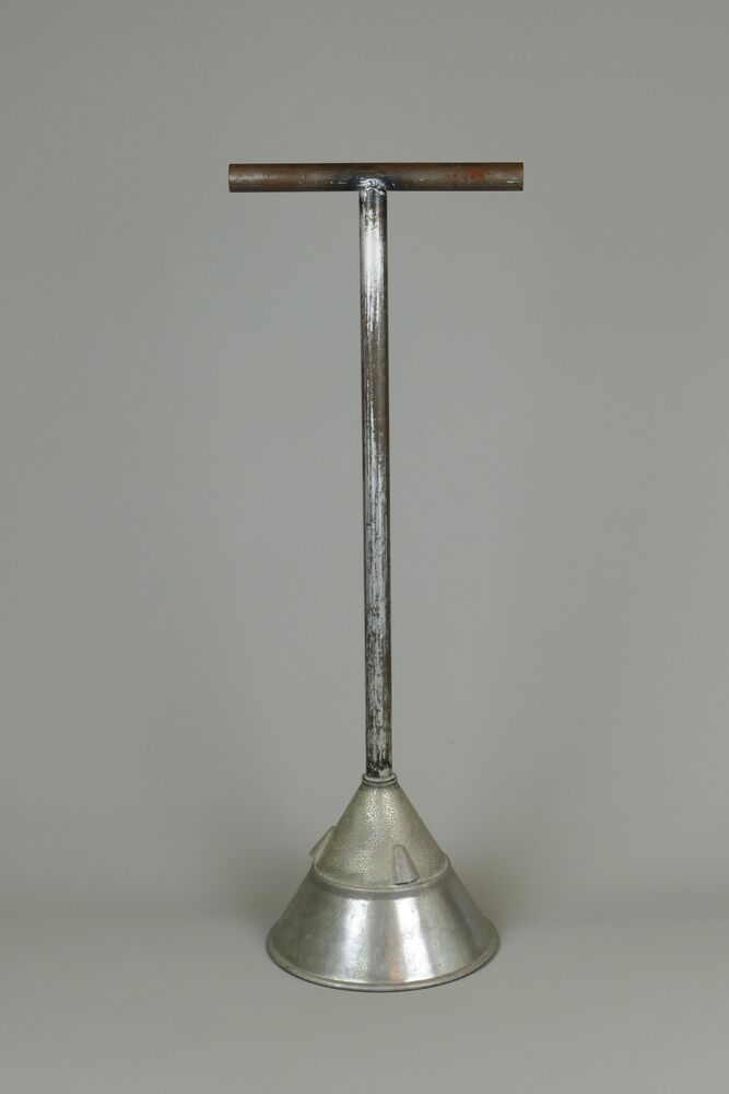 Wasstamper van aluminium met metalen steel.