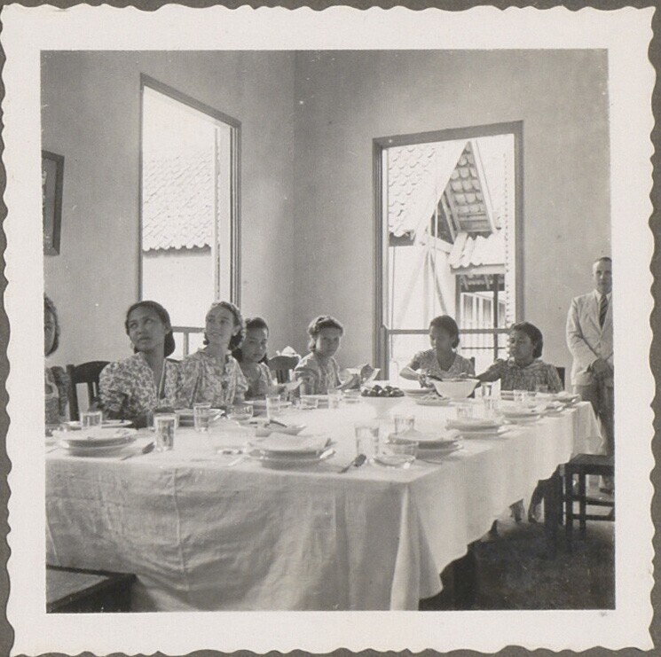 Groepsportret van het huispersoneel van de naar Nede...