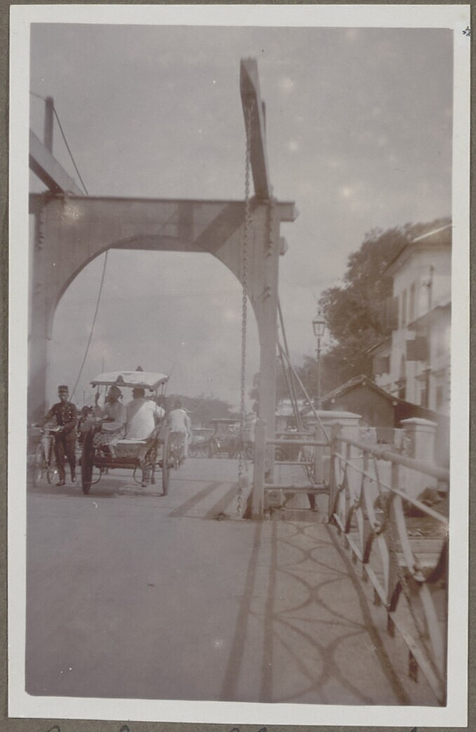 Uitzicht op de ophaalbrug bij de vismarkt van Jakarta